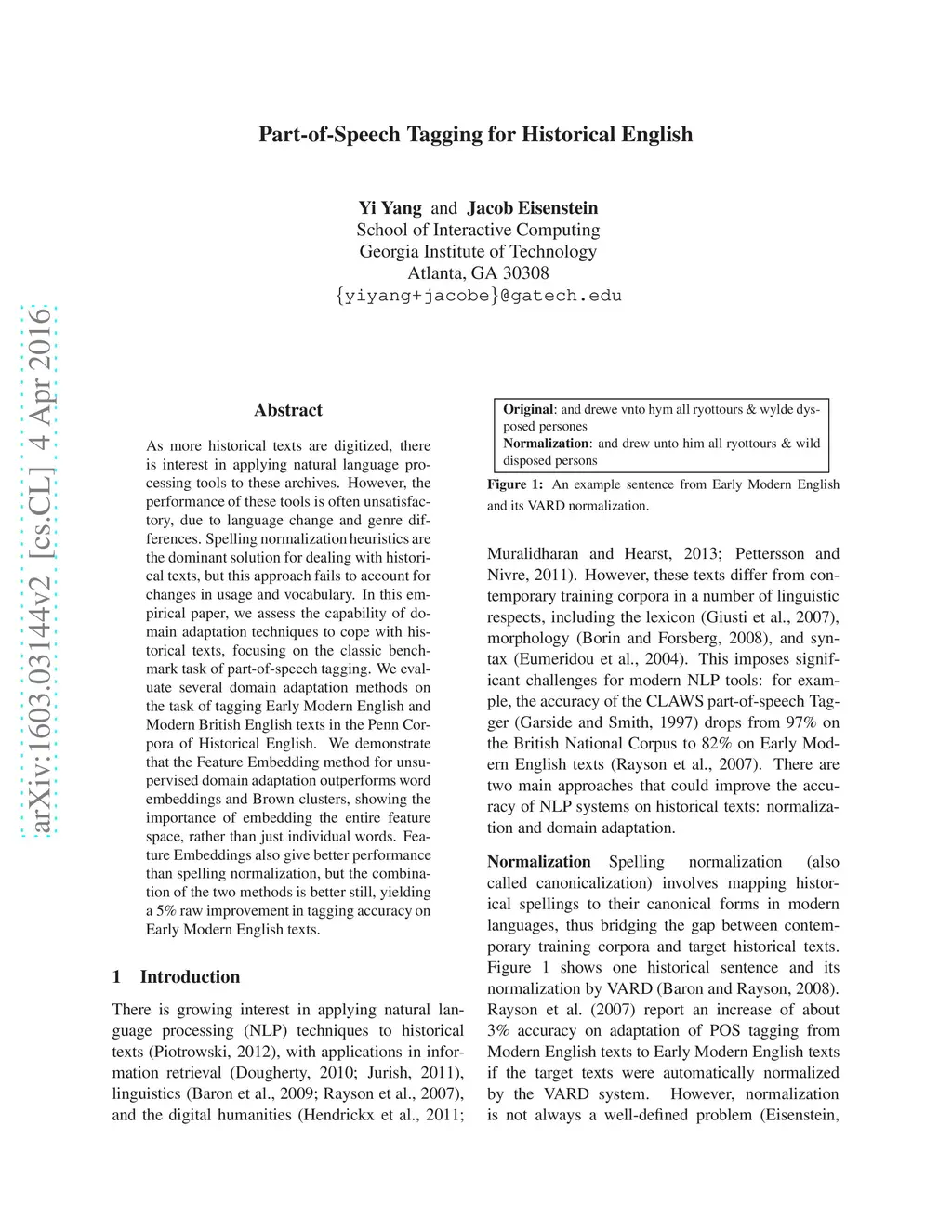 Part-of-Speech Tagging for Historical English