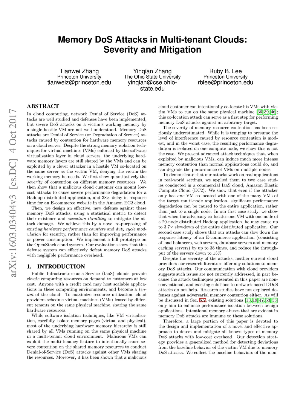 Memory DoS Attacks in Multi-tenant Clouds: Severity and Mitigation