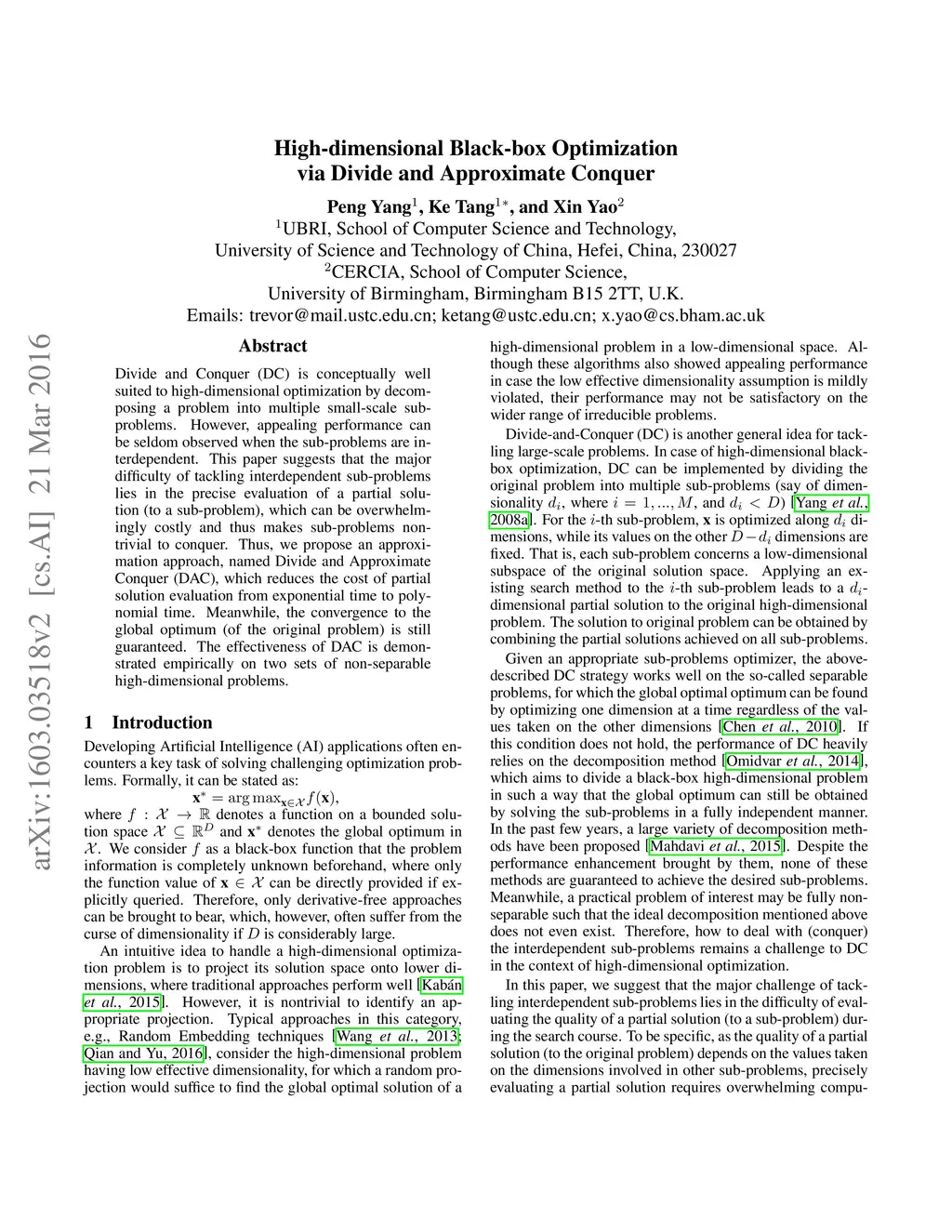 Divide and Conquer (DC) is conceptually well suited to high-dimensional optimization by decomposing a problem into multiple small-scale sub-problems. However, appealing performance can be seldom observed when the sub-problems are interdependent. This paper suggests that the major difficulty of tackling interdependent sub-problems lies in the precise evaluation of a partial solution (to a sub-problem), which can be overwhelmingly costly and thus makes sub-problems non-trivial to conquer. Thus, we propose an approximation approach, named Divide and Approximate Conquer (DAC), which reduces the cost of partial solution evaluation from exponential time to polynomial time. Meanwhile, the convergence to the global optimum (of the original problem) is still guaranteed. The effectiveness of DAC is demonstrated empirically on two sets of non-separable high-dimensional problems.