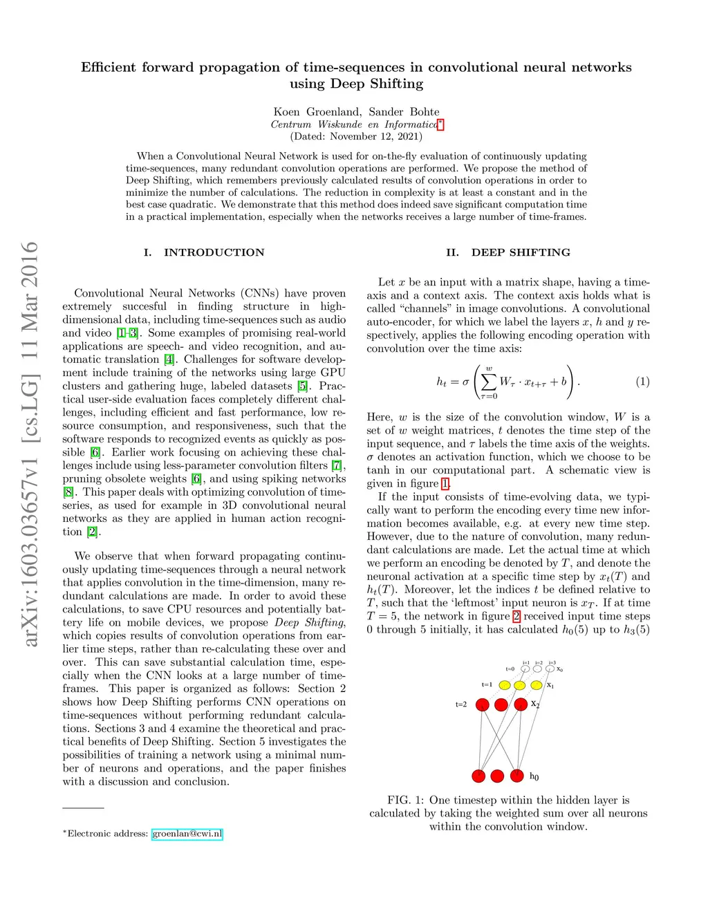 When a Convolutional Neural Network is used for on-the-fly evaluation of continuously updating time-sequences, many redundant convolution operations are performed. We propose the method of Deep Shifting, which remembers previously calculated results of convolution operations in order to minimize the number of calculations. The reduction in complexity is at least a constant and in the best case quadratic. We demonstrate that this method does indeed save significant computation time in a practical implementation, especially when the networks receives a large number of time-frames.