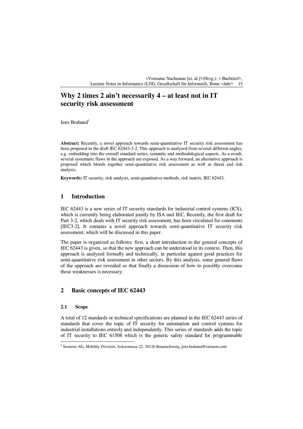 Recently, a novel approach towards semi-quantitative IT security risk assessment has been proposed in the draft IEC 62443-3-2. This approach is analyzed from several different angles, e.g. embedding into the overall standard series, semantic and methodological aspects. As a result, several systematic flaws in the approach are exposed. As a way forward, an alternative approach is proposed which blends together semi-quantitative risk assessment as well as threat and risk analysis.