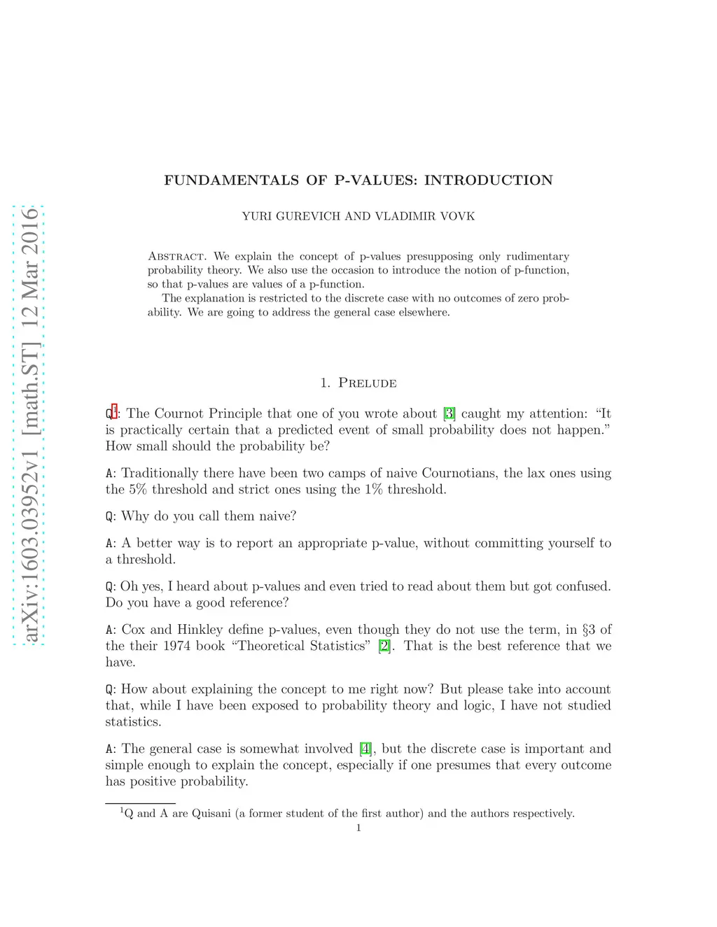 We explain the concept of p-values presupposing only rudimentary probability theory. We also use the occasion to introduce the notion of p-function, so that p-values are values of a p-function. The explanation is restricted to the discrete case with no outcomes of zero probability. We are going to address the general case elsewhere.