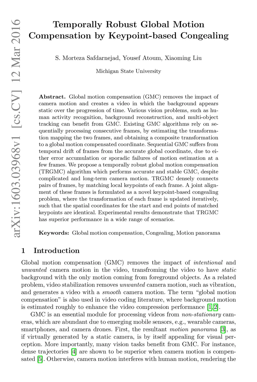 Temporally Robust Global Motion Compensation by Keypoint-based