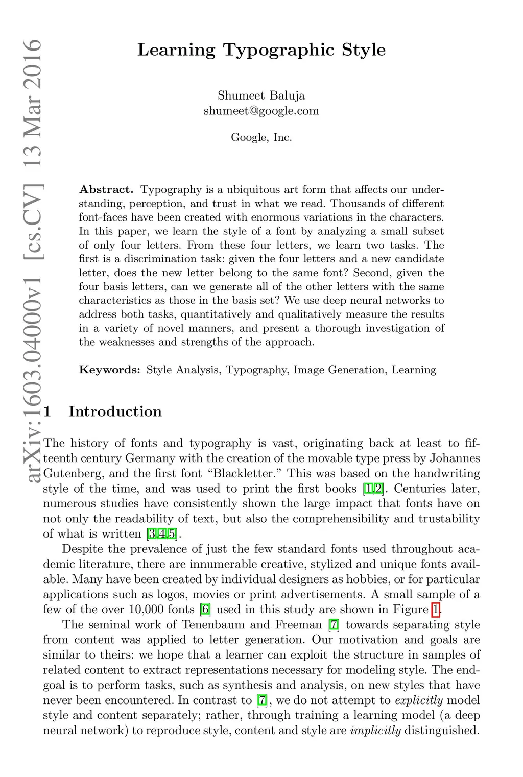 Typography is a ubiquitous art form that affects our understanding, perception, and trust in what we read. Thousands of different font-faces have been created with enormous variations in the characters. In this paper, we learn the style of a font by analyzing a small subset of only four letters. From these four letters, we learn two tasks. The first is a discrimination task: given the four letters and a new candidate letter, does the new letter belong to the same font? Second, given the four basis letters, can we generate all of the other letters with the same characteristics as those in the basis set? We use deep neural networks to address both tasks, quantitatively and qualitatively measure the results in a variety of novel manners, and present a thorough investigation of the weaknesses and strengths of the approach.