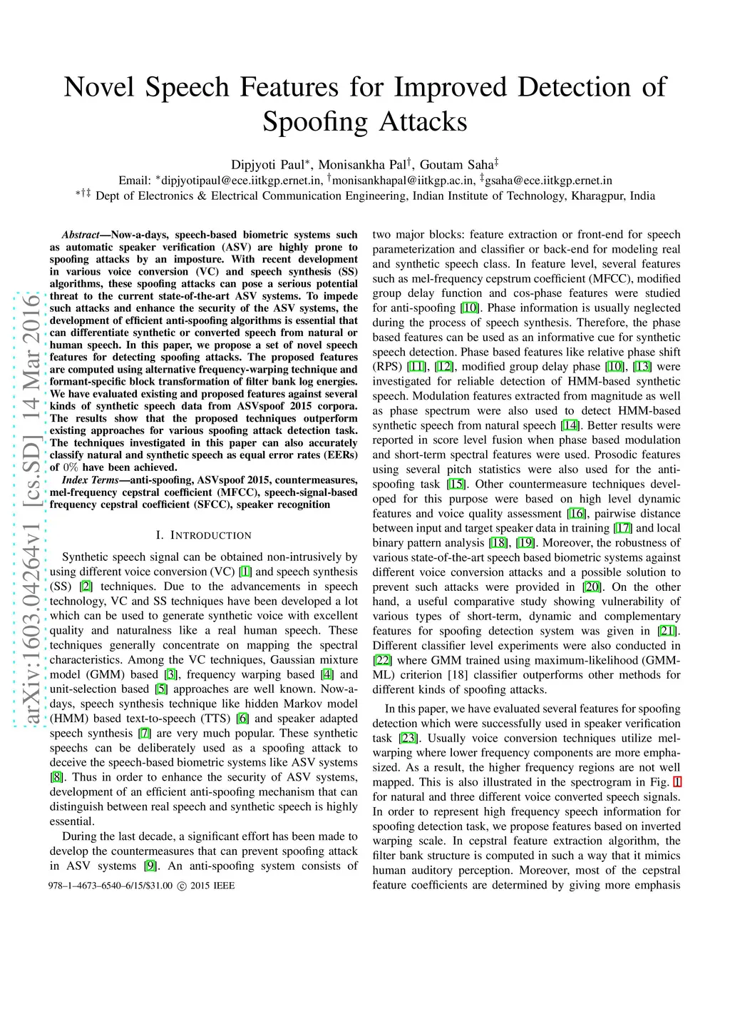 Novel Speech Features for Improved Detection of Spoofing Attacks