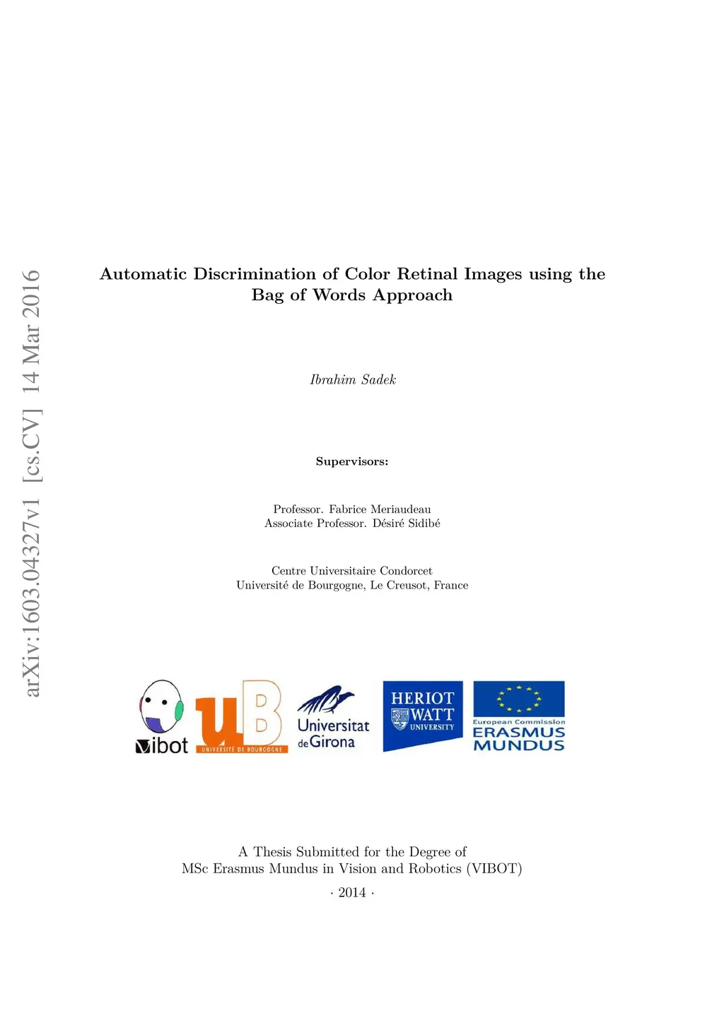 Automatic Discrimination of Color Retinal Images using the Bag of Words