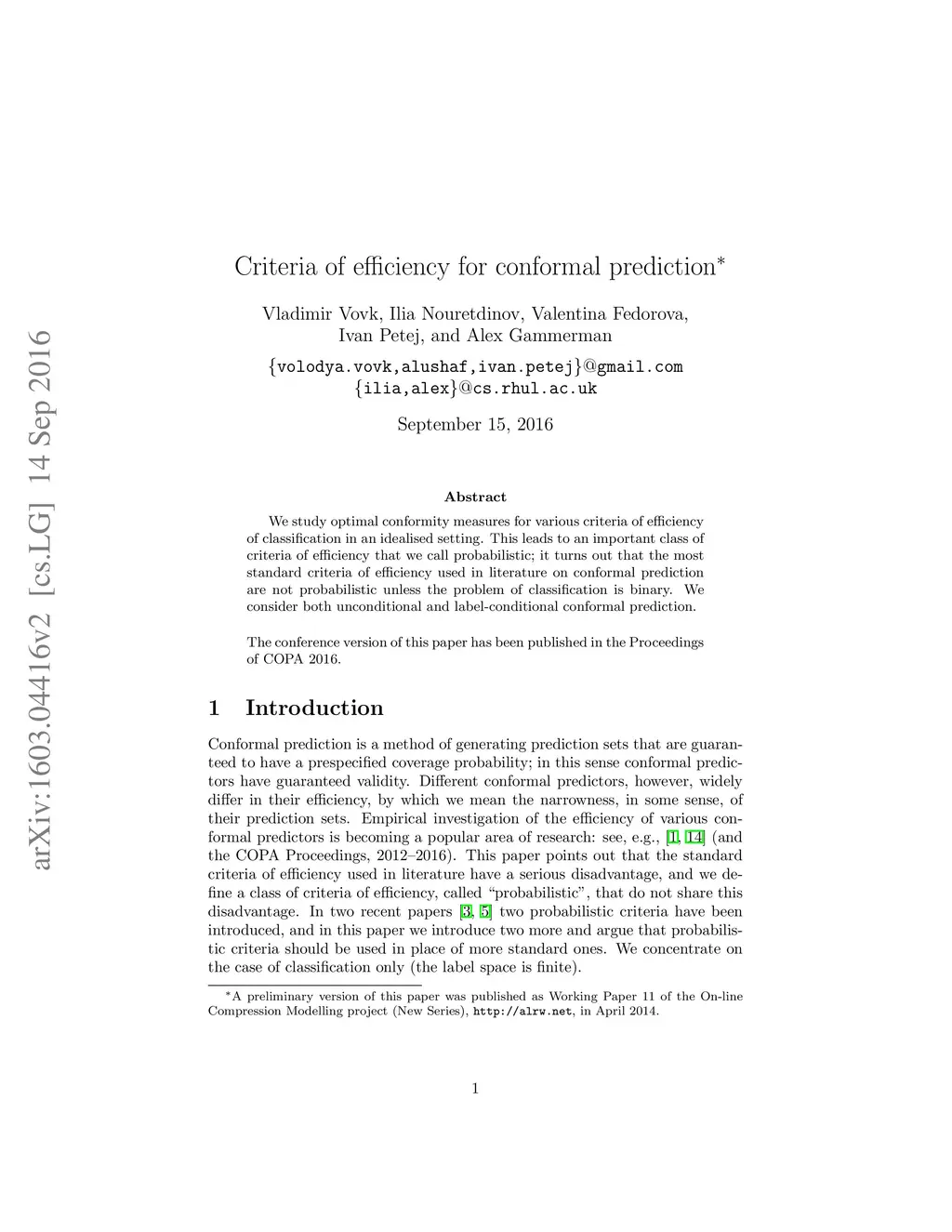 We study optimal conformity measures for various criteria of efficiency of classification in an idealised setting. This leads to an important class of criteria of efficiency that we call probabilistic; it turns out that the most standard criteria of efficiency used in literature on conformal prediction are not probabilistic unless the problem of classification is binary. We consider both unconditional and label-conditional conformal prediction.