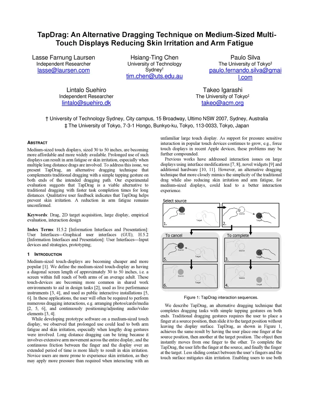 TapDrag: An Alternative Dragging Technique on Medium-Sized MultiTouch