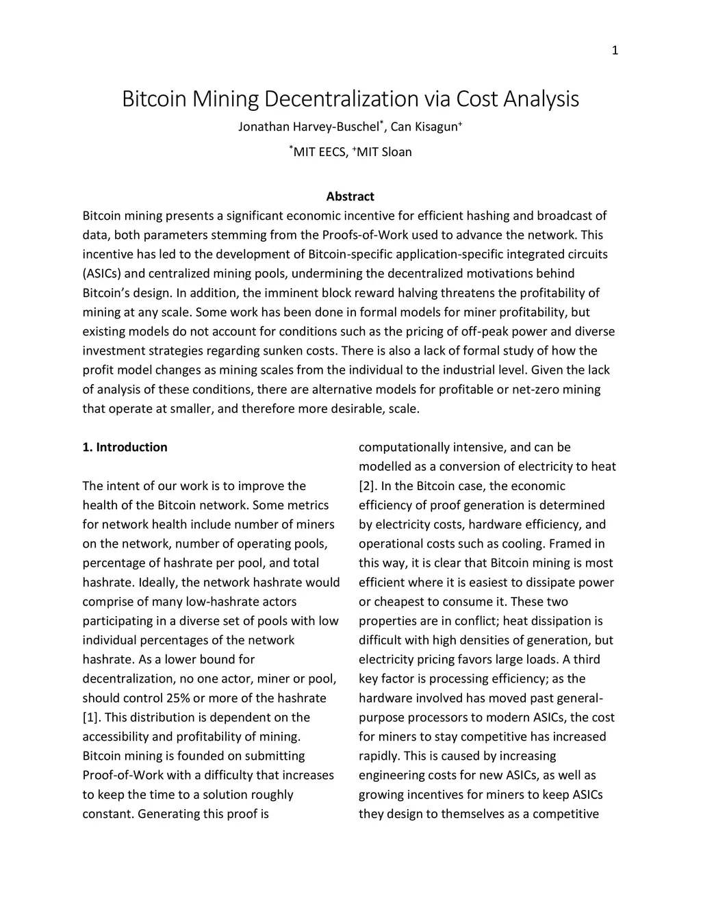 Bitcoin Mining Decentralization via Cost Analysis