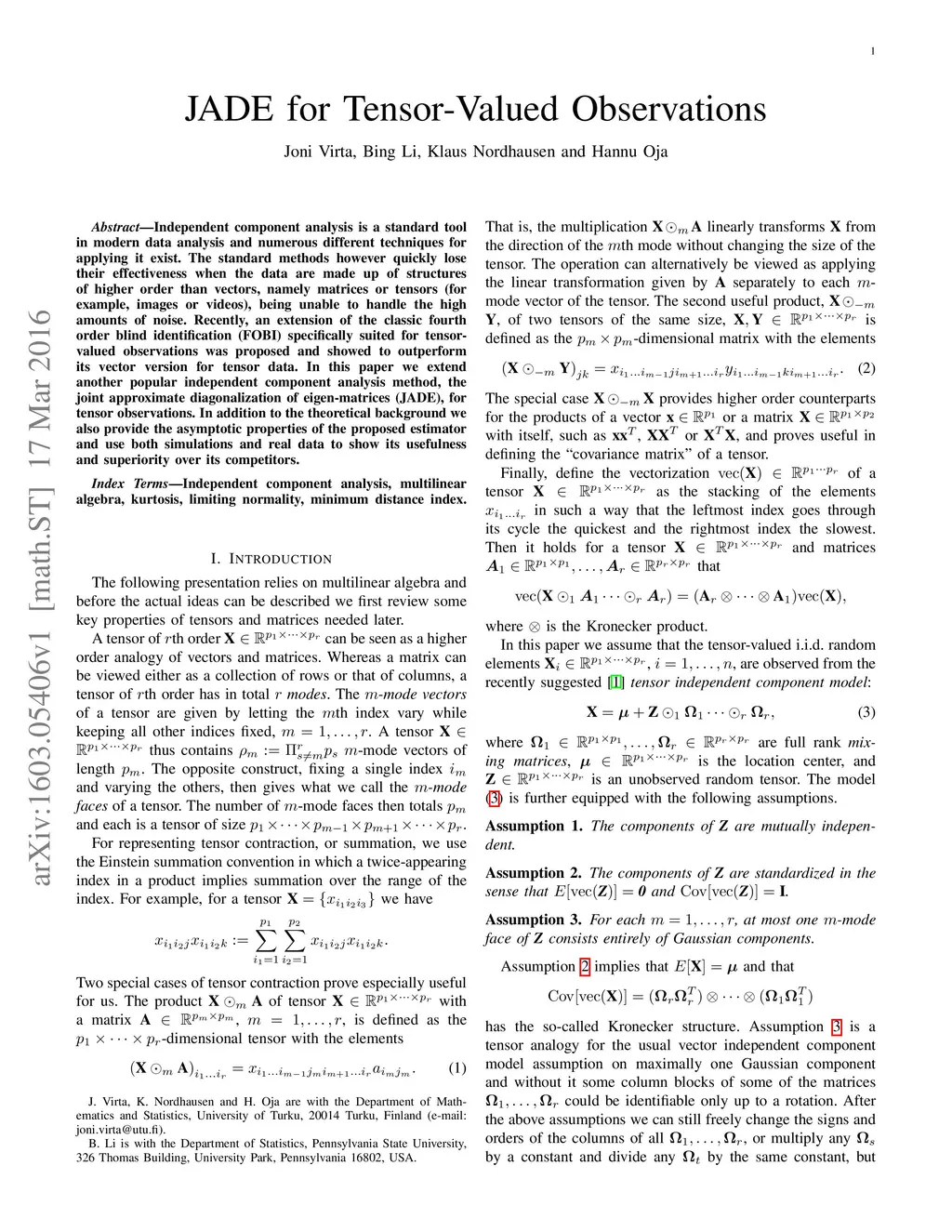 JADE for Tensor-Valued Observations