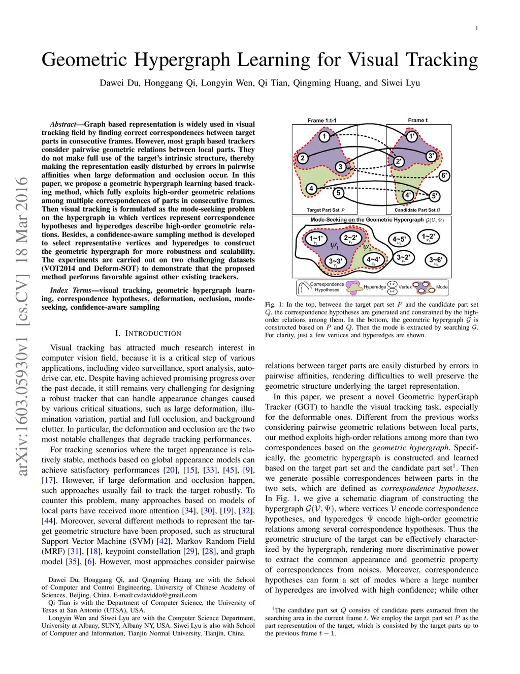Geometric Hypergraph Learning for Visual Tracking
