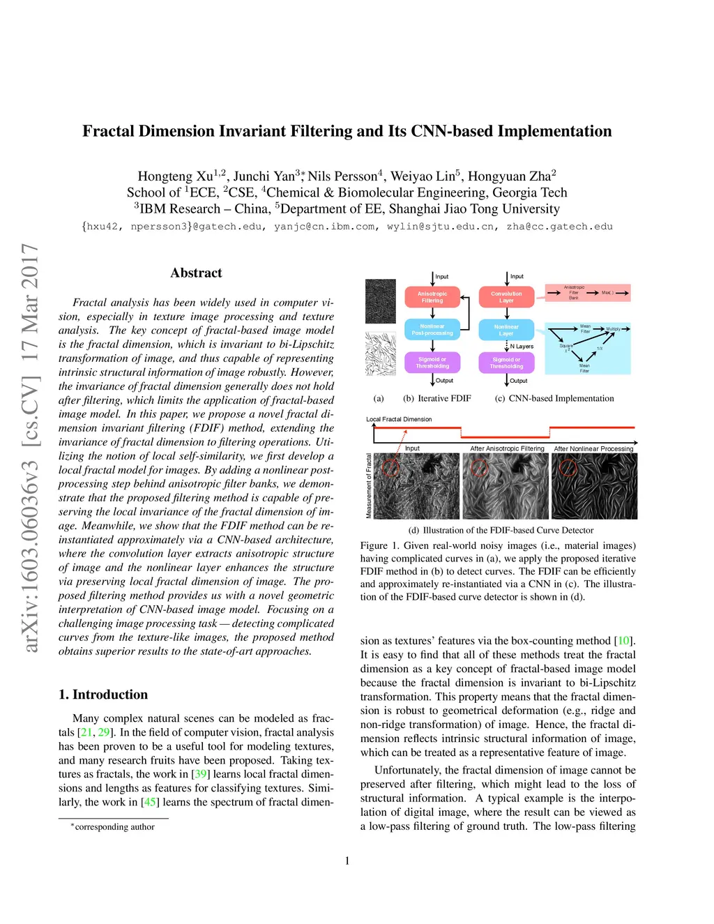 Fractal Dimension Invariant Filtering and Its CNN-based Implementation