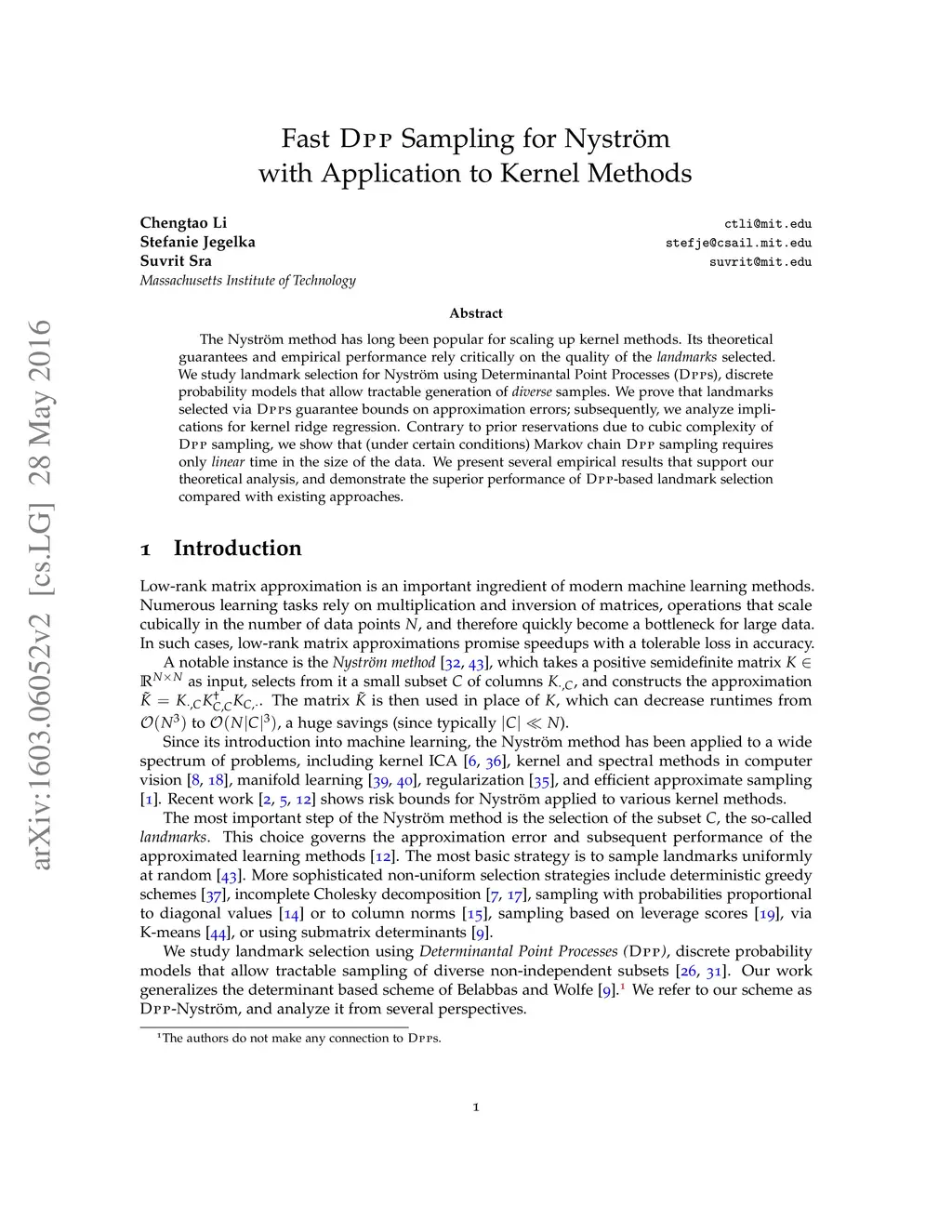 Fast DPP Sampling for Nyström with Application to Kernel Methods