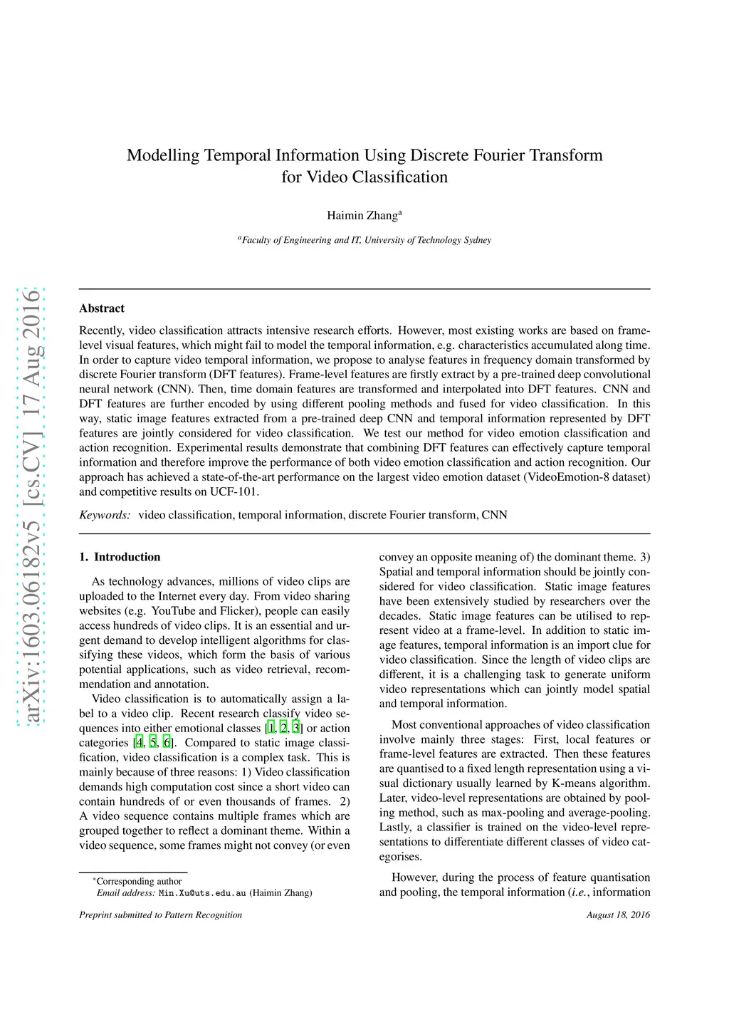 Modelling Temporal Information Using Discrete Fourier Transform for Video Classification