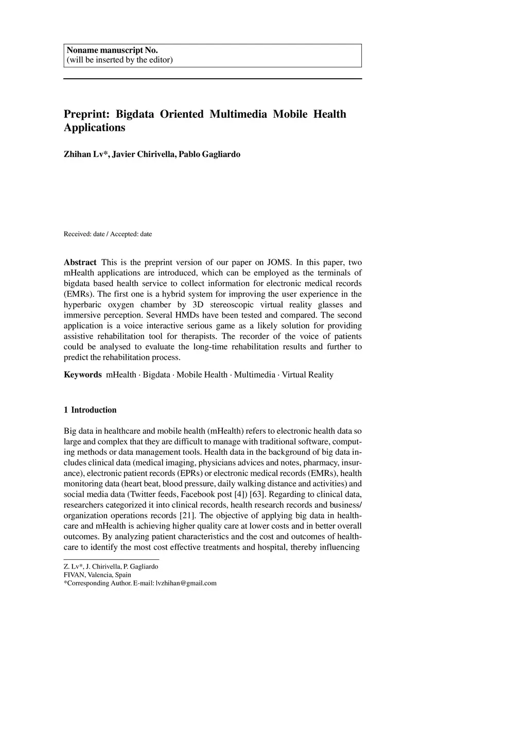 Preprint: Bigdata Oriented Multimedia Mobile Health Applications
