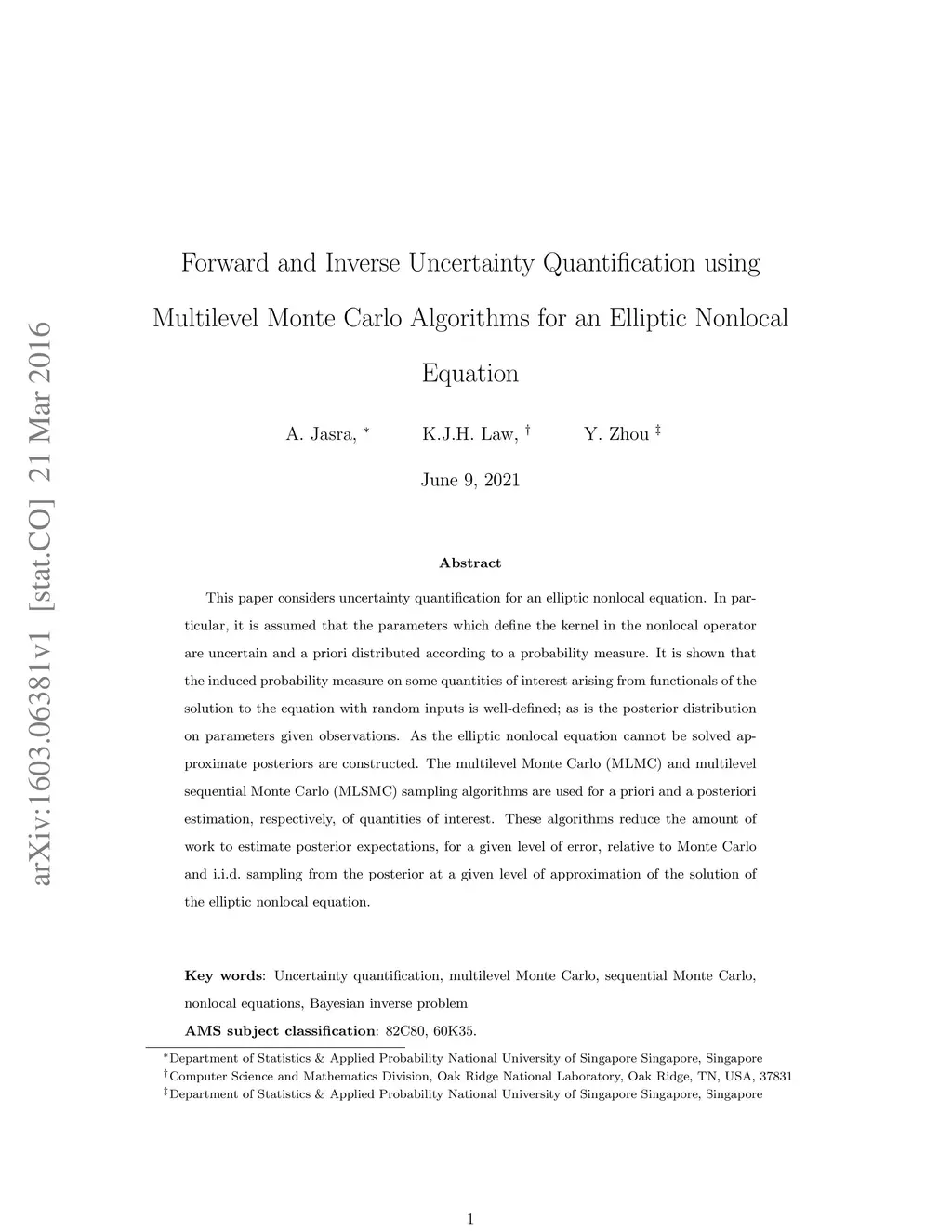 Carlo Algorithms for an Elliptic Nonlocal Equation