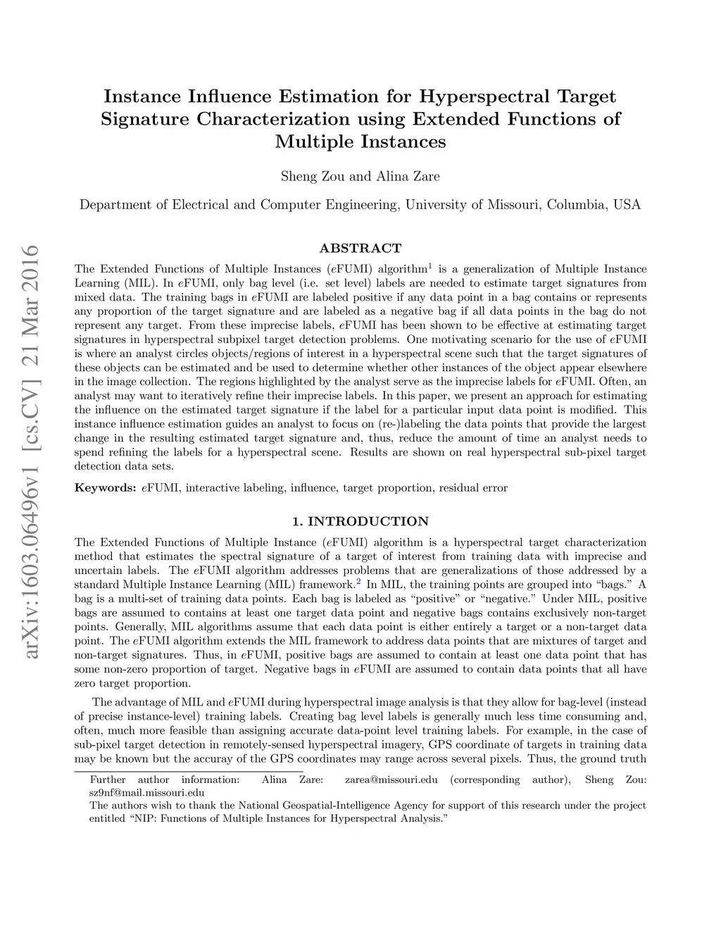The Extended Functions of Multiple Instances (eFUMI) algorithm is a generalization of Multiple Instance Learning (MIL). In eFUMI, only bag level (i.e. set level) labels are needed to estimate target signatures from mixed data. The training bags in eFUMI are labeled positive if any data point in a bag contains or represents any proportion of the target signature and are labeled as a negative bag if all data points in the bag do not represent any target. From these imprecise labels, eFUMI has been shown to be effective at estimating target signatures in hyperspectral subpixel target detection problems. One motivating scenario for the use of eFUMI is where an analyst circles objects/regions of interest in a hyperspectral scene such that the target signatures of these objects can be estimated and be used to determine whether other instances of the object appear elsewhere in the image collection. The regions highlighted by the analyst serve as the imprecise labels for eFUMI. Often, an analyst may want to iteratively refine their imprecise labels. In this paper, we present an approach for estimating the influence on the estimated target signature if the label for a particular input data point is modified. This "instance influence estimation" guides an analyst to focus on (re-)labeling the data points that provide the largest change in the resulting estimated target signature and, thus, reduce the amount of time an analyst needs to spend refining the labels for a hyperspectral scene. Results are shown on real hyperspectral sub-pixel target detection data sets.