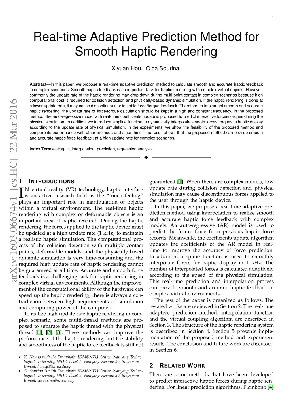 Real-time Adaptive Prediction Method for Smooth Haptic Rendering