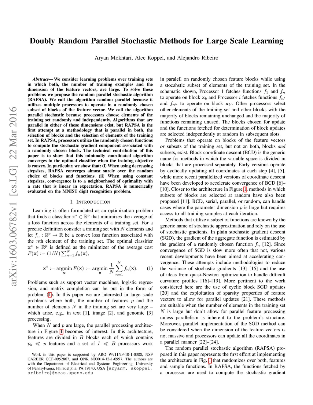 Doubly Random Parallel Stochastic Methods for Large Scale Learning