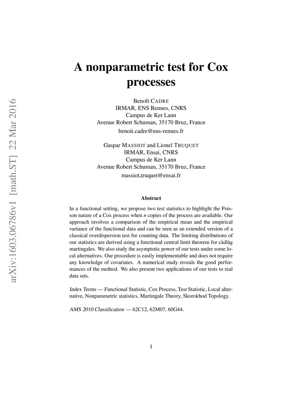 A nonparametric test for Cox processes