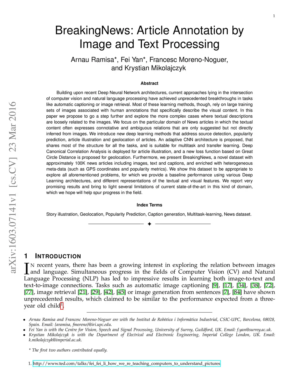 BreakingNews: Article Annotation by Image and Text Processing