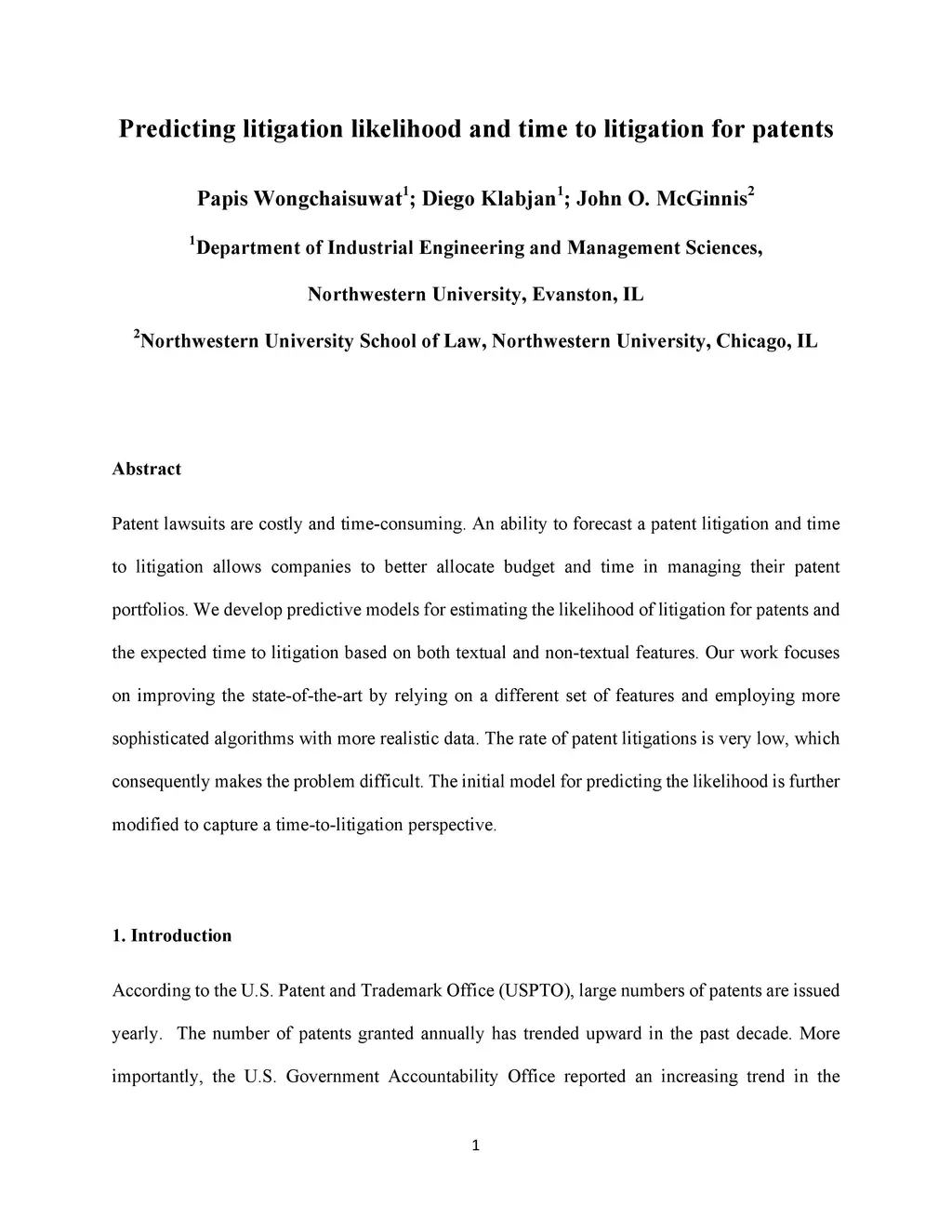 Predicting litigation likelihood and time to litigation for patents