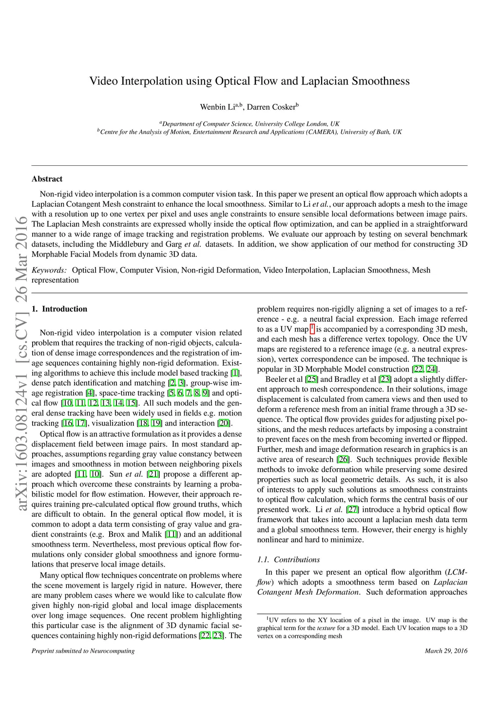 Video Interpolation using Optical Flow and Laplacian Smoothness