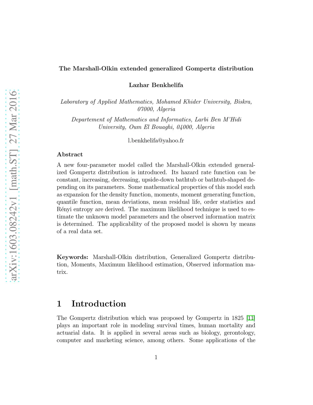 The Marshall-Olkin extended generalized Gompertz distribution