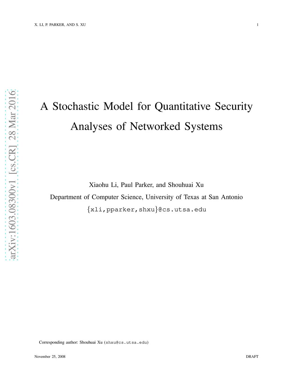 A Stochastic Model for Quantitative Security Analyses of Networked