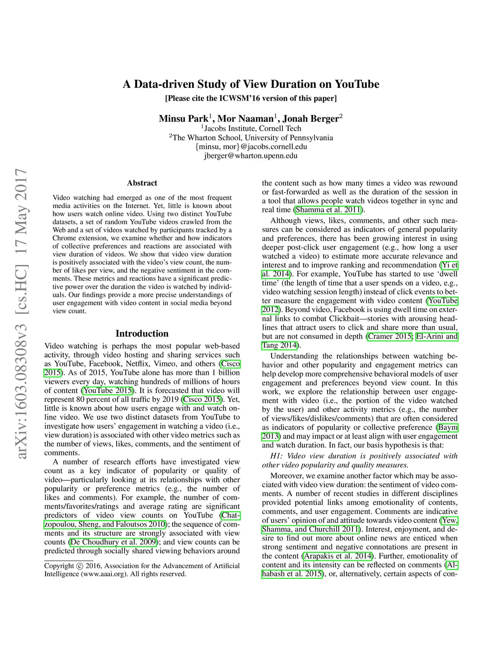 Video watching had emerged as one of the most frequent media activities on the Internet. Yet, little is known about how users watch online video. Using two distinct YouTube datasets, a set of random YouTube videos crawled from the Web and a set of videos watched by participants tracked by a Chrome extension, we examine whether and how indicators of collective preferences and reactions are associated with view duration of videos. We show that video view duration is positively associated with the video's view count, the number of likes per view, and the negative sentiment in the comments. These metrics and reactions have a significant predictive power over the duration the video is watched by individuals. Our findings provide a more precise understandings of user engagement with video content in social media beyond view count.