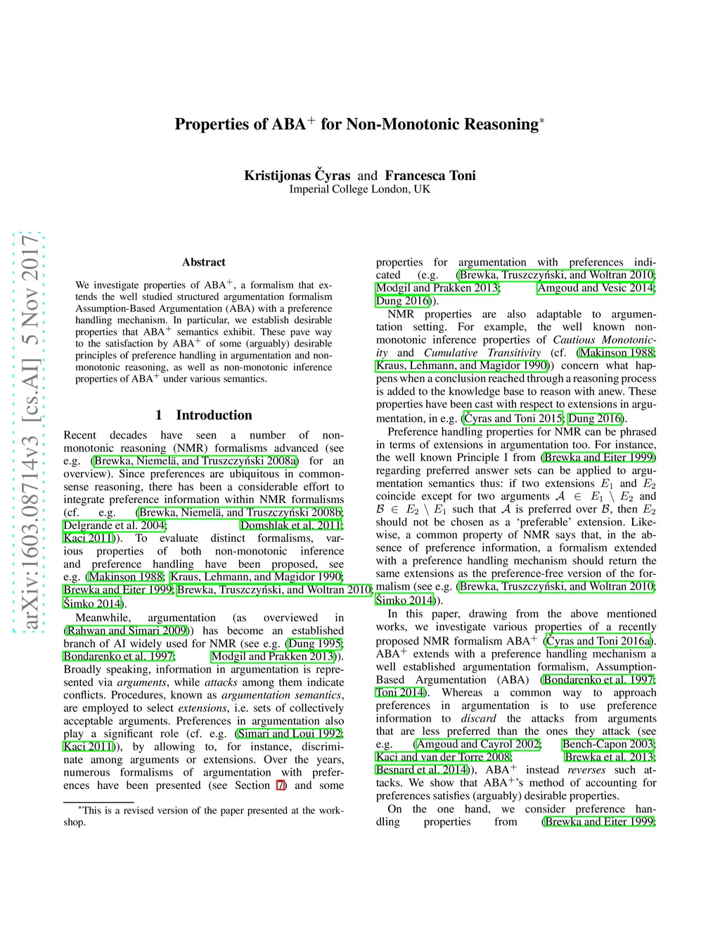 Properties of ABA+ for Non-Monotonic Reasoning