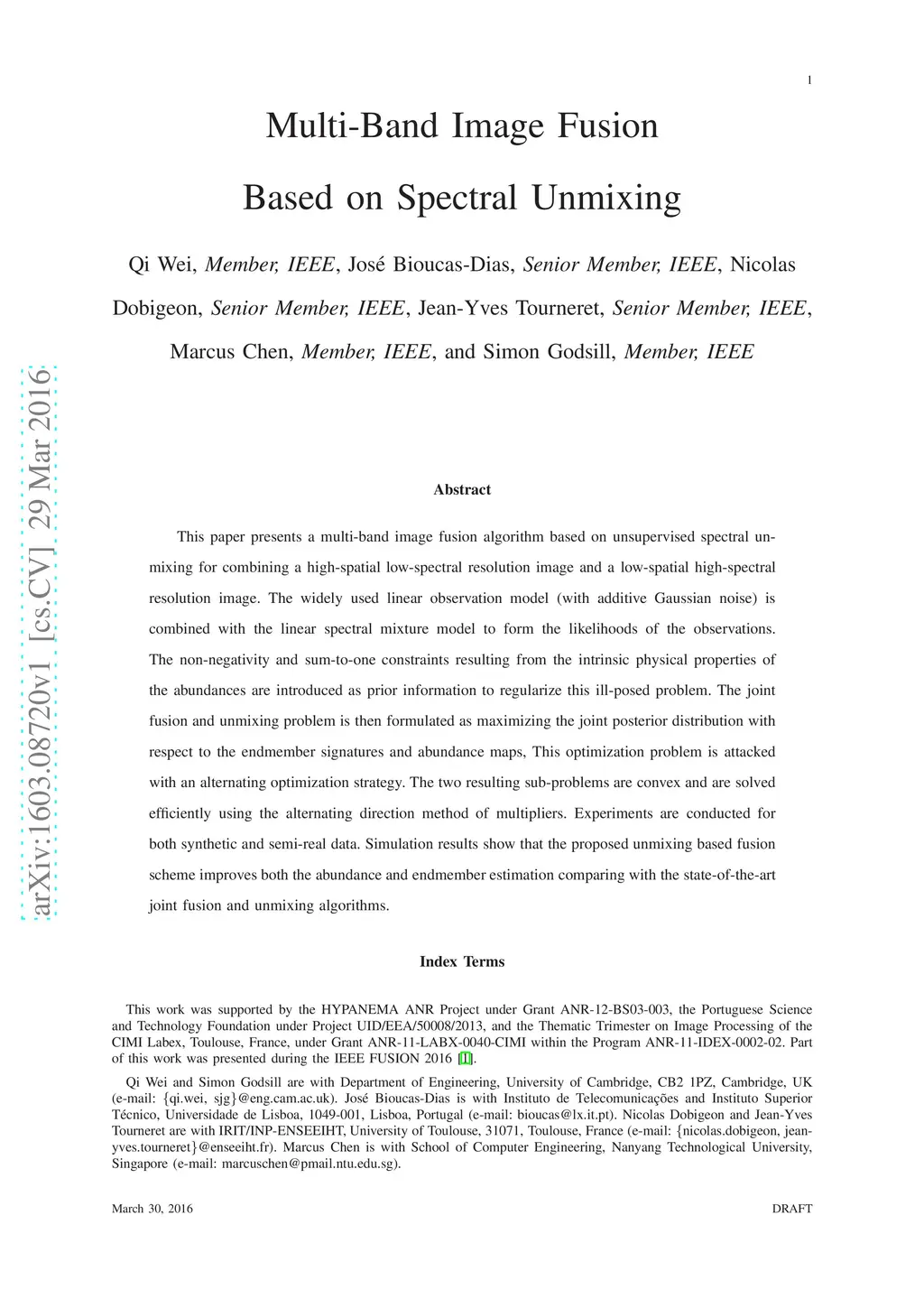 Multi-Band Image Fusion Based on Spectral Unmixing