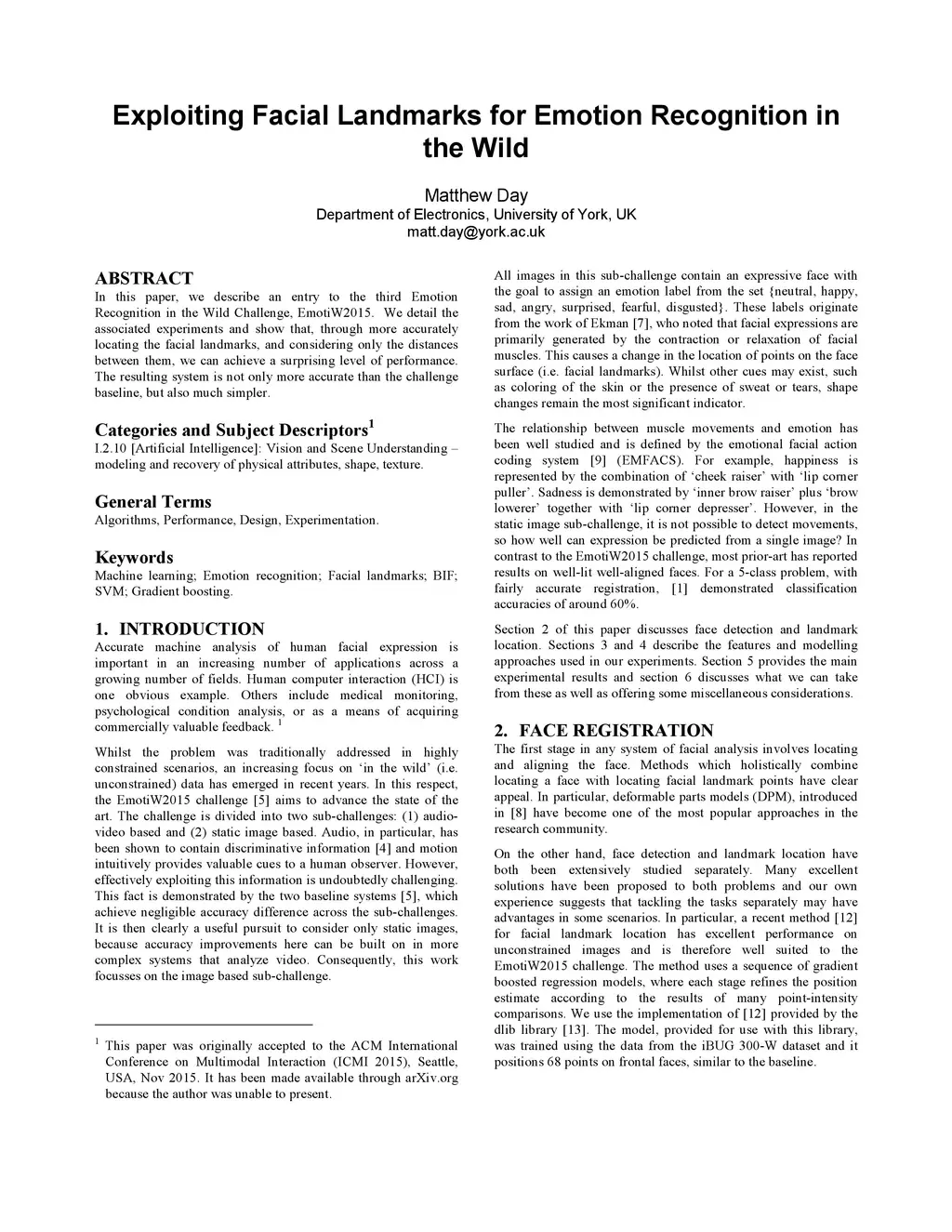 In this paper, we describe an entry to the third Emotion Recognition in the Wild Challenge, EmotiW2015. We detail the associated experiments and show that, through more accurately locating the facial landmarks, and considering only the distances between them, we can achieve a surprising level of performance. The resulting system is not only more accurate than the challenge baseline, but also much simpler.