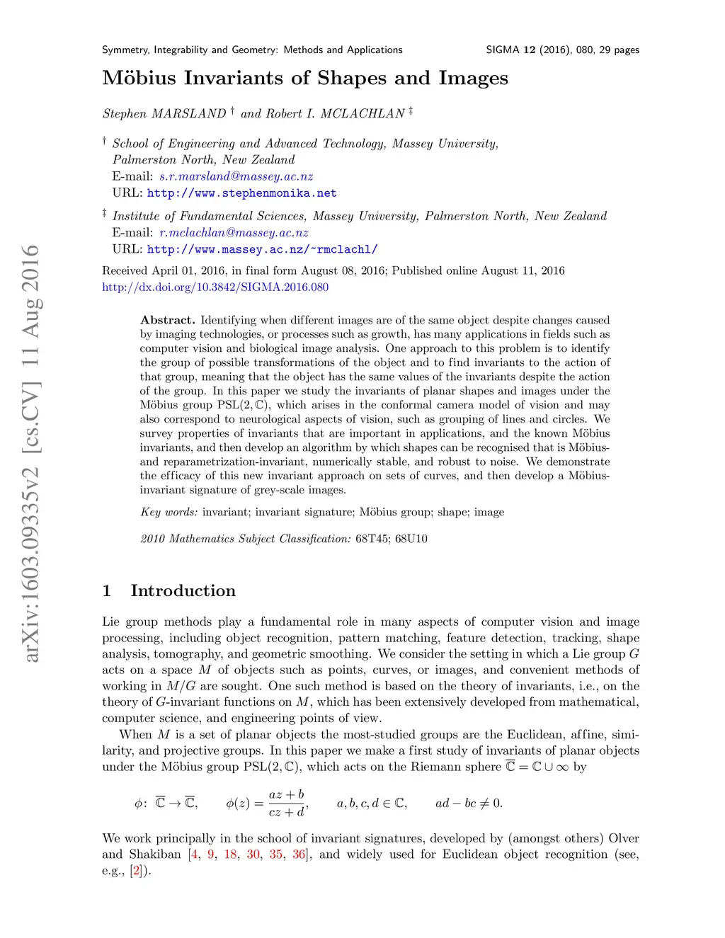 Identifying when different images are of the same object despite changes caused by imaging technologies, or processes such as growth, has many applications in fields such as computer vision and biological image analysis. One approach to this problem is to identify the group of possible transformations of the object and to find invariants to the action of that group, meaning that the object has the same values of the invariants despite the action of the group. In this paper we study the invariants of planar shapes and images under the M\"obius group , which arises in the conformal camera model of vision and may also correspond to neurological aspects of vision, such as grouping of lines and circles. We survey properties of invariants that are important in applications, and the known M\"obius invariants, and then develop an algorithm by which shapes can be recognised that is M\"obius- and reparametrization-invariant, numerically stable, and robust to noise. We demonstrate the efficacy of this new invariant approach on sets of curves, and then develop a M\"obius-invariant signature of grey-scale images.