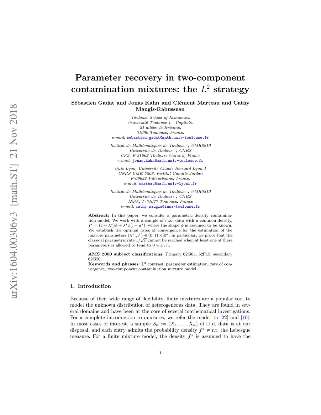 Parameter recovery in two-component contamination mixtures: the