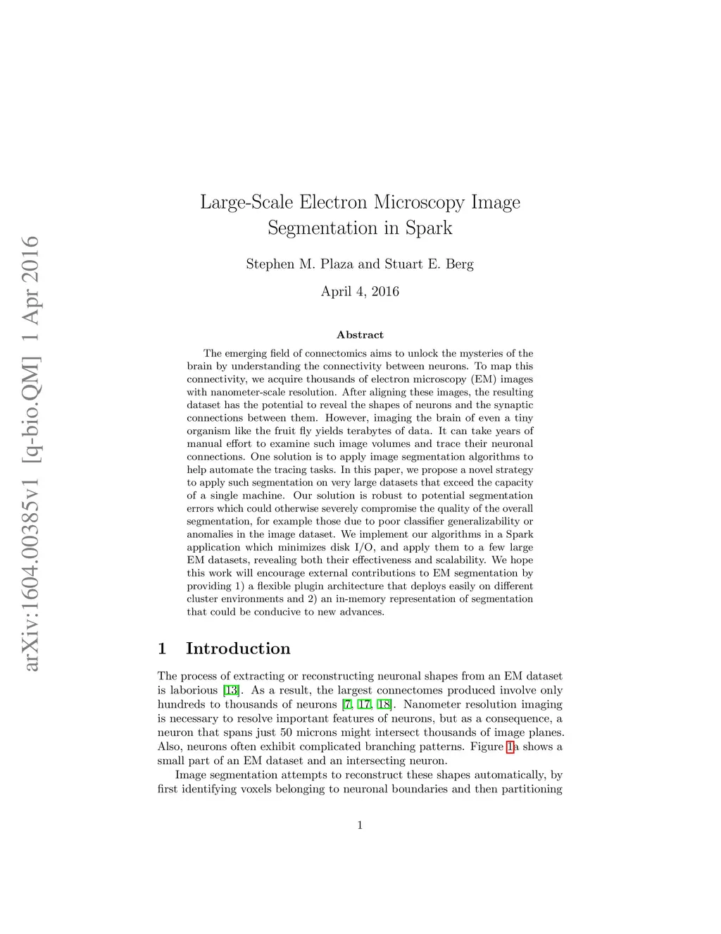 Large-Scale Electron Microscopy Image Segmentation in Spark