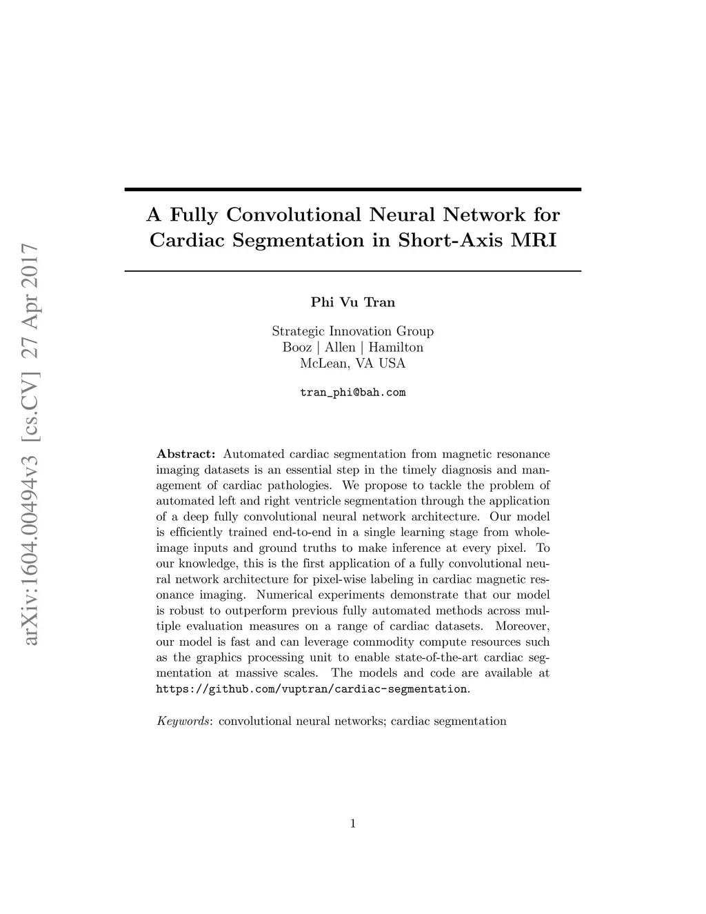 A Fully Convolutional Neural Network for Cardiac Segmentation in