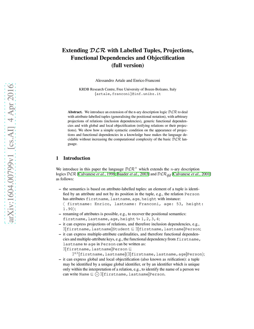 Extending DLR with Labelled Tuples, Projections, Functional Dependencies