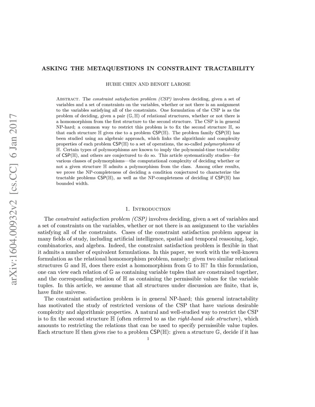 The constraint satisfaction problem (CSP) involves deciding, given a set of variables and a set of constraints on the variables, whether or not there is an assignment to the variables satisfying all of the constraints. One formulation of the CSP is as the problem of deciding, given a pair (G,H) of relational structures, whether or not there is a homomorphism from the first structure to the second structure. The CSP is in general NP-hard; a common way to restrict this problem is to fix the second structure H, so that each structure H gives rise to a problem CSP(H). The problem family CSP(H) has been studied using an algebraic approach, which links the algorithmic and complexity properties of each problem CSP(H) to a set of operations, the so-called polymorphisms of H. Certain types of polymorphisms are known to imply the polynomial-time tractability of , and others are conjectured to do so. This article systematically studies---for various classes of polymorphisms---the computational complexity of deciding whether or not a given structure H admits a polymorphism from the class. Among other results, we prove the NP-completeness of deciding a condition conjectured to characterize the tractable problems CSP(H), as well as the NP-completeness of deciding if CSP(H) has bounded width.
