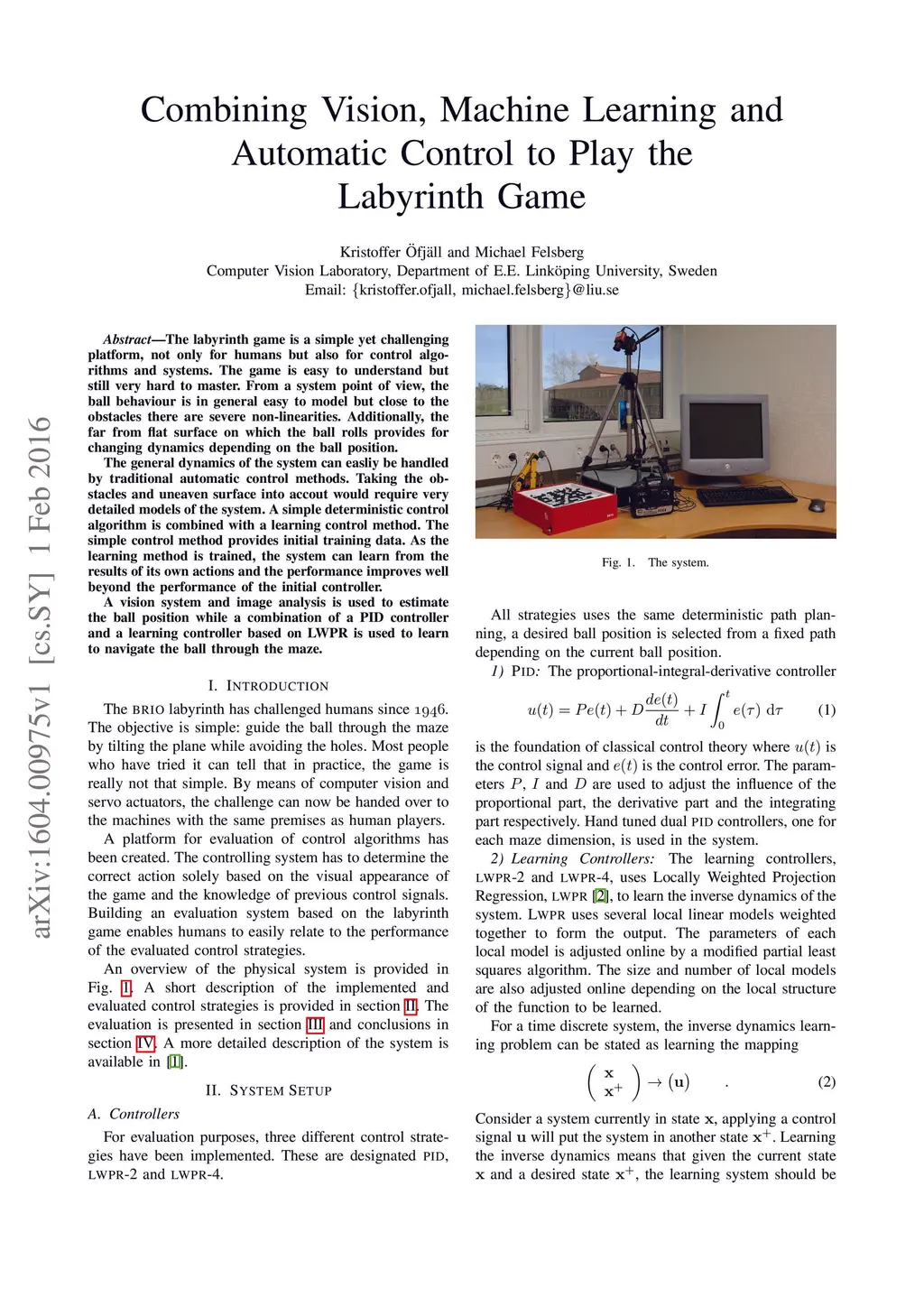Combining Vision, Machine Learning and Automatic Control to Play the