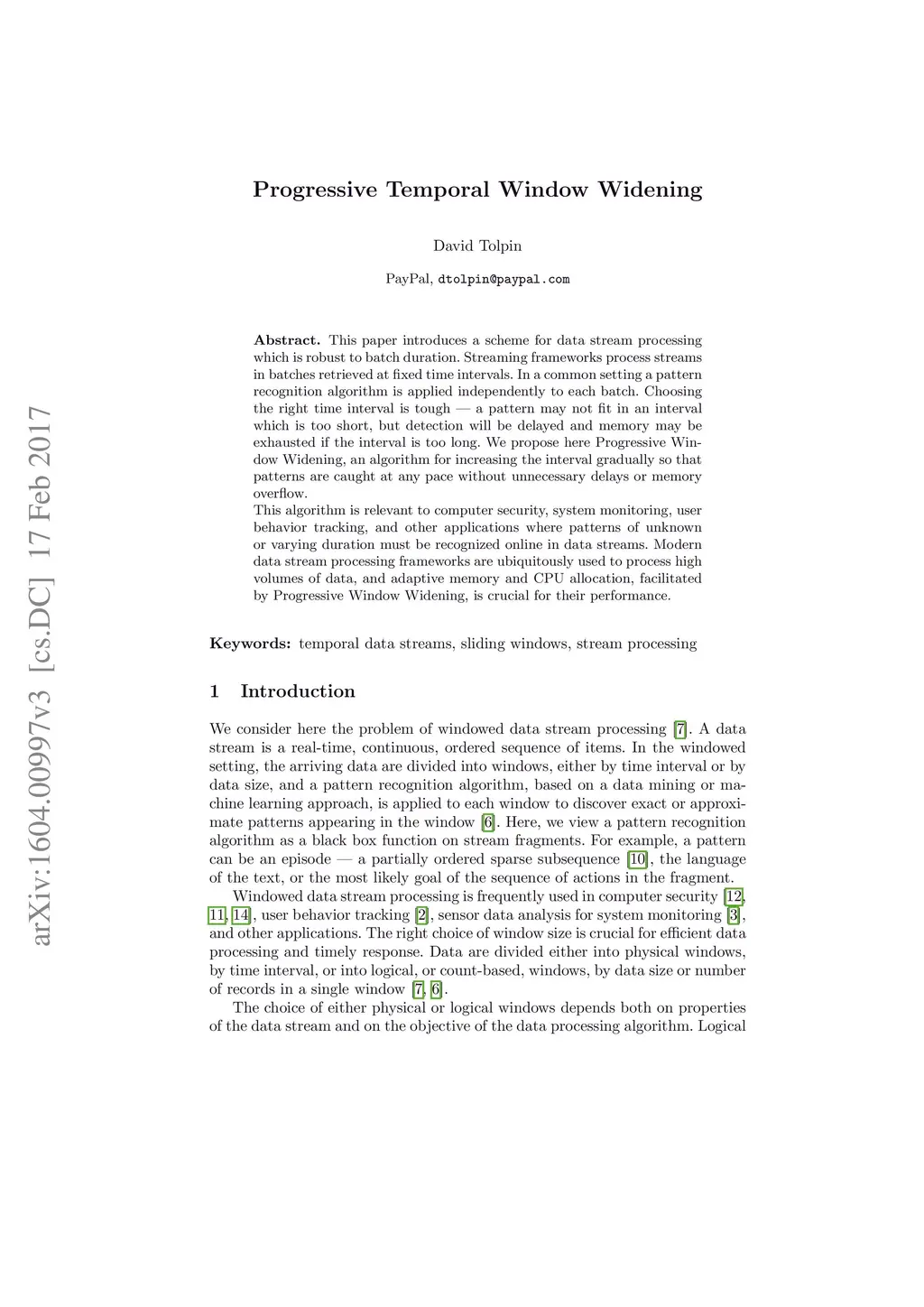 This paper introduces a scheme for data stream processing which is robust to batch duration. Streaming frameworks process streams in batches retrieved at fixed time intervals. In a common setting a pattern recognition algorithm is applied independently to each batch. Choosing the right time interval is tough --- a pattern may not fit in an interval which is too short, but detection will be delayed and memory may be exhausted if the interval is too long. We propose here Progressive Window Widening, an algorithm for increasing the interval gradually so that patterns are caught at any pace without unnecessary delays or memory overflow. This algorithm is relevant to computer security, system monitoring, user behavior tracking, and other applications where patterns of unknown or varying duration must be recognized online in data streams. Modern data stream processing frameworks are ubiquitously used to process high volumes of data, and adaptive memory and CPU allocation, facilitated by Progressive Window Widening, is crucial for their performance.
