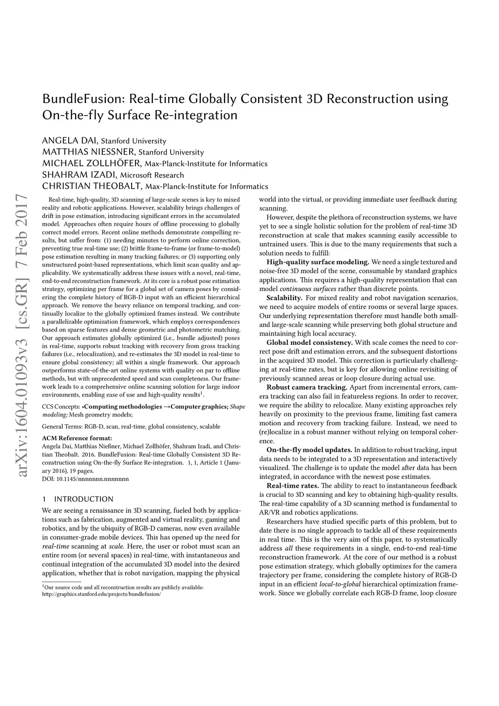 BundleFusion: Real-time Globally Consistent 3D Reconstruction using