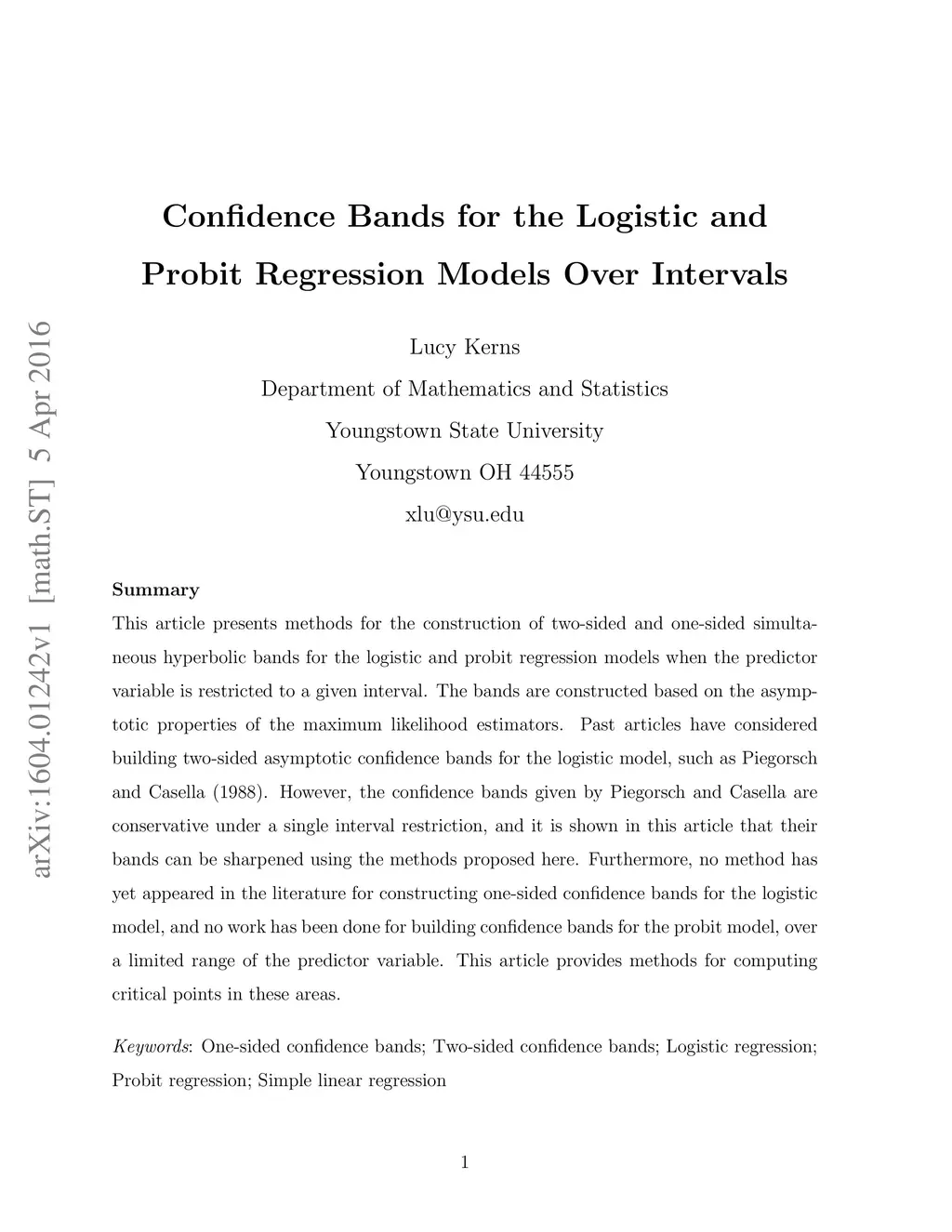 This article presents methods for the construction of two-sided and one-sided simultaneous hyperbolic bands for the logistic and probit regression models when the predictor variable is restricted to a given interval. The bands are constructed based on the asymptotic properties of the maximum likelihood estimators. Past articles have considered building two-sided asymptotic confidence bands for the logistic model, such as Piegorsch and Casella (1988). However, the confidence bands given by Piegorsch and Casella are conservative under a single interval restriction, and it is shown in this article that their bands can be sharpened using the methods proposed here. Furthermore, no method has yet appeared in the literature for constructing one-sided confidence bands for the logistic model, and no work has been done for building confidence bands for the probit model, over a limited range of the predictor variable. This article provides methods for computing critical points in these areas.