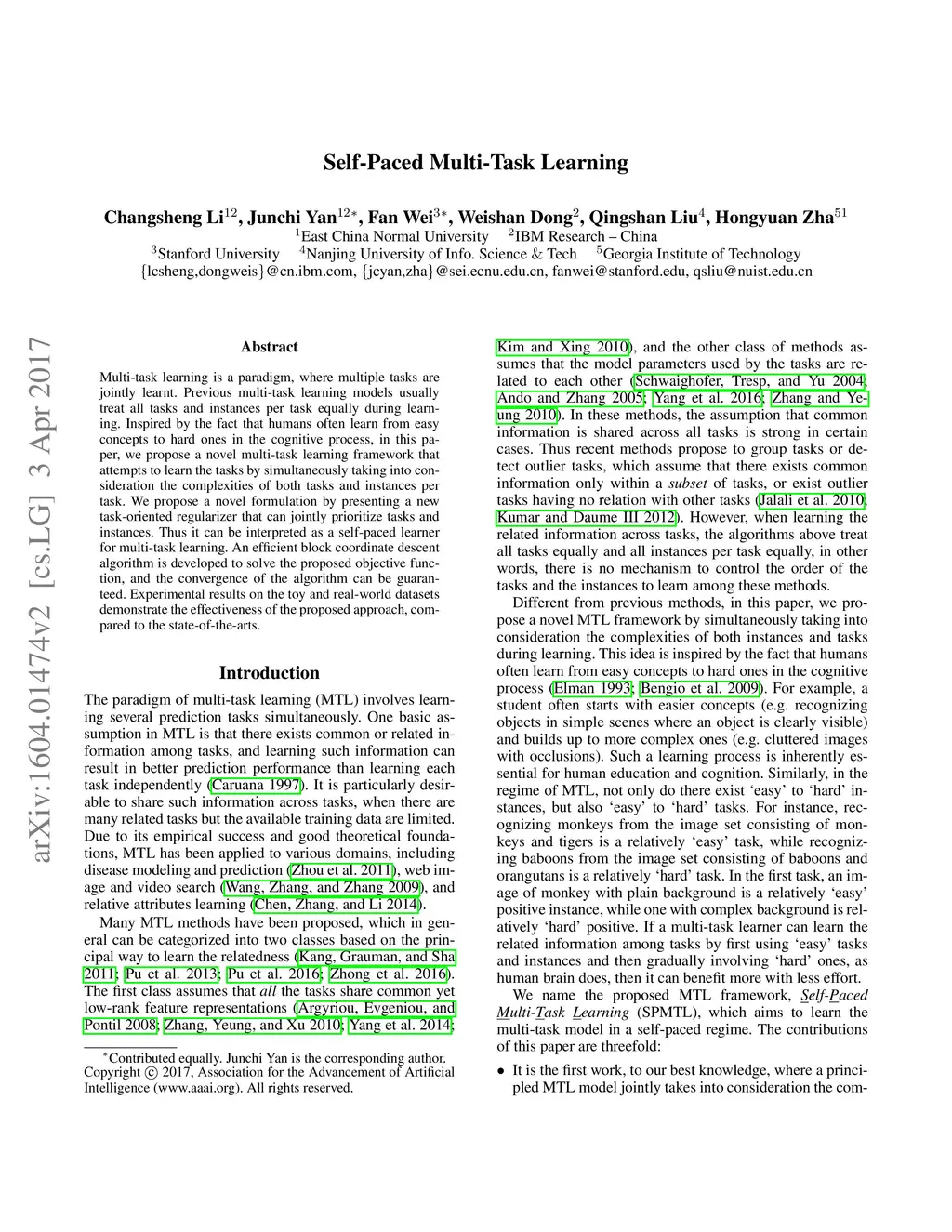 In this paper, we propose a novel multi-task learning (MTL) framework, called Self-Paced Multi-Task Learning (SPMTL). Different from previous works treating all tasks and instances equally when training, SPMTL attempts to jointly learn the tasks by taking into consideration the complexities of both tasks and instances. This is inspired by the cognitive process of human brain that often learns from the easy to the hard. We construct a compact SPMTL formulation by proposing a new task-oriented regularizer that can jointly prioritize the tasks and the instances. Thus it can be interpreted as a self-paced learner for MTL. A simple yet effective algorithm is designed for optimizing the proposed objective function. An error bound for a simplified formulation is also analyzed theoretically. Experimental results on toy and real-world datasets demonstrate the effectiveness of the proposed approach, compared to the state-of-the-art methods.