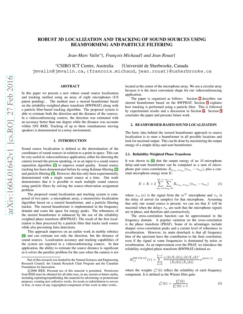 Robust 3D Localization and Tracking of Sound Sources Using Beamforming