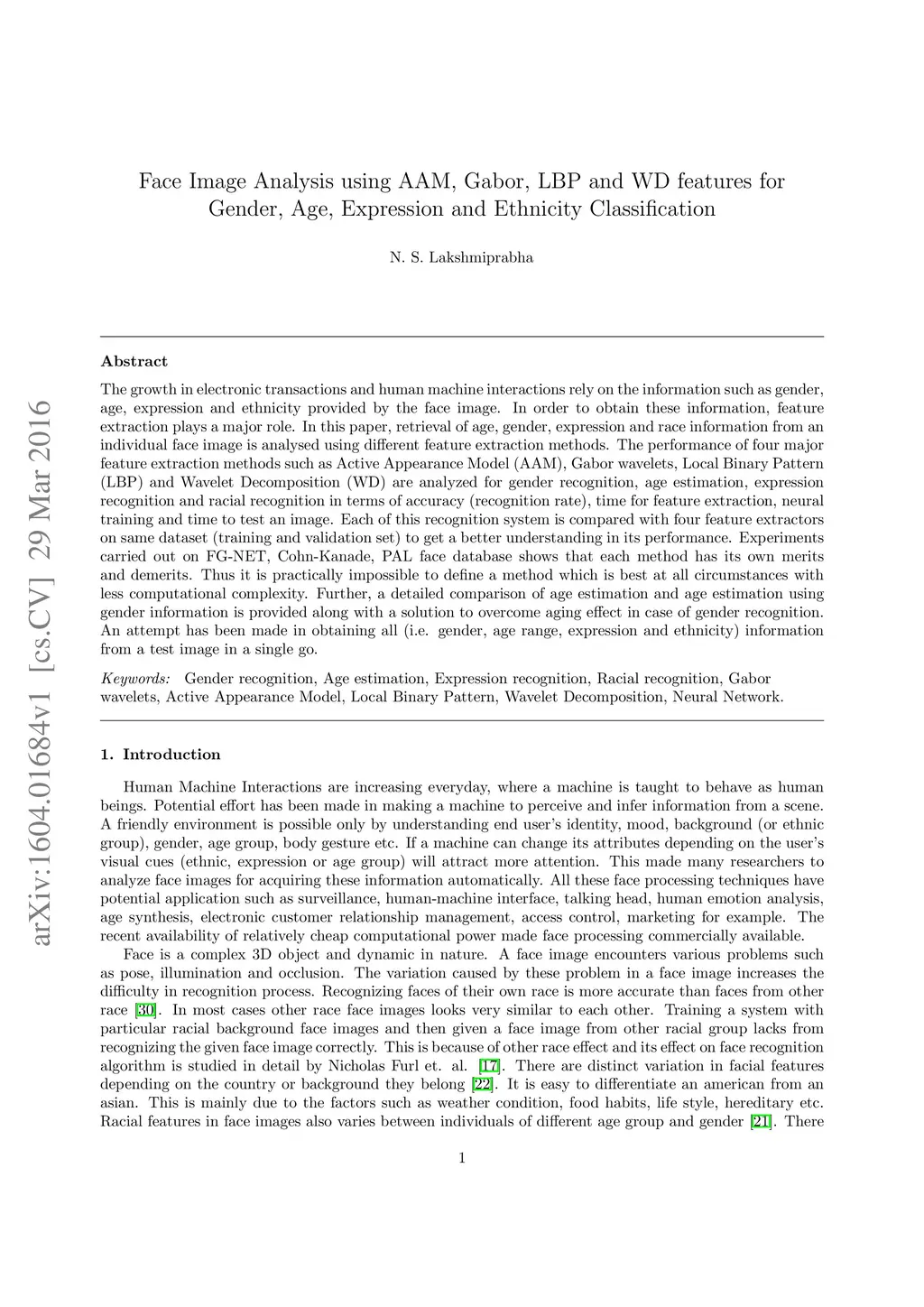 Face Image Analysis using AAM, Gabor, LBP and WD features for Gender,