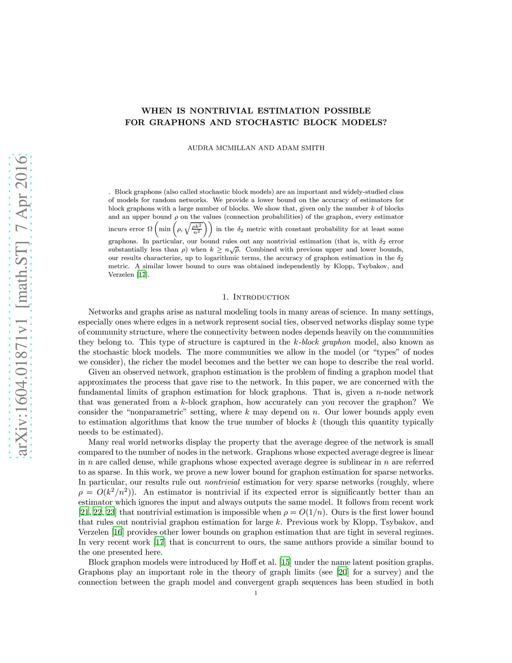Block graphons (also called stochastic block models) are an important and widely-studied class of models for random networks. We provide a lower bound on the accuracy of estimators for block graphons with a large number of blocks. We show that, given only the number of blocks and an upper bound on the values (connection probabilities) of the graphon, every estimator incurs error at least on the order of in the metric with constant probability, in the worst case over graphons. In particular, our bound rules out any nontrivial estimation (that is, with error substantially less than ) when . Combined with previous upper and lower bounds, our results characterize, up to logarithmic terms, the minimax accuracy of graphon estimation in the metric. A similar lower bound to ours was obtained independently by Klopp, Tsybakov and Verzelen (2016).
