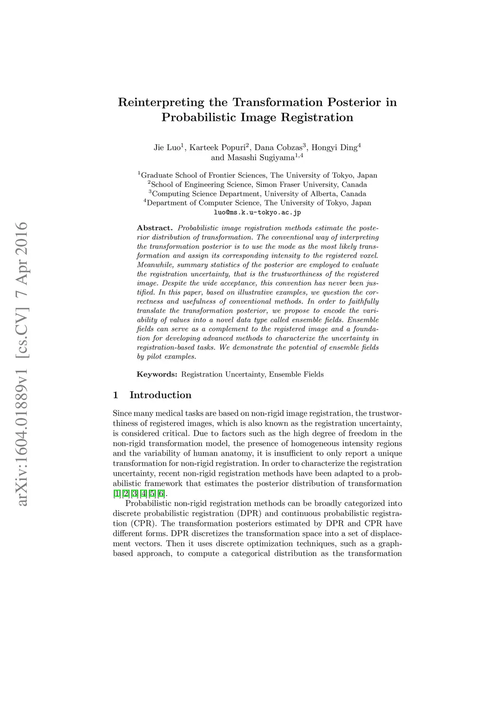 Probabilistic image registration methods estimate the posterior distribution of transformation. The conventional way of interpreting the transformation posterior is to use the mode as the most likely transformation and assign its corresponding intensity to the registered voxel. Meanwhile, summary statistics of the posterior are employed to evaluate the registration uncertainty, that is the trustworthiness of the registered image. Despite the wide acceptance, this convention has never been justified. In this paper, based on illustrative examples, we question the correctness and usefulness of conventional methods. In order to faithfully translate the transformation posterior, we propose to encode the variability of values into a novel data type called ensemble fields. Ensemble fields can serve as a complement to the registered image and a foundation for developing advanced methods to characterize the uncertainty in registration-based tasks. We demonstrate the potential of ensemble fields by pilot examples
