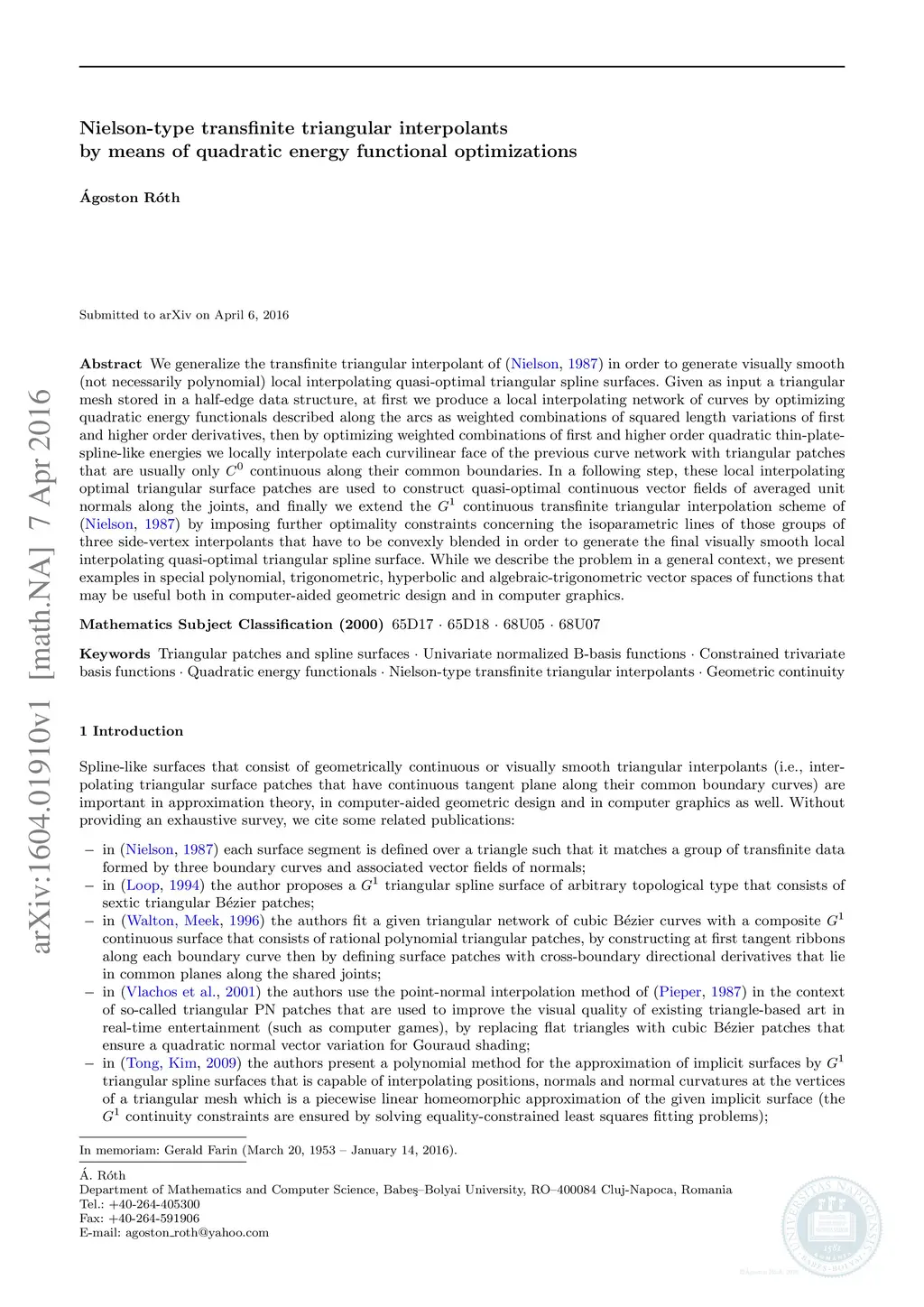 Nielson-type transfinite triangular interpolants by means of quadratic
