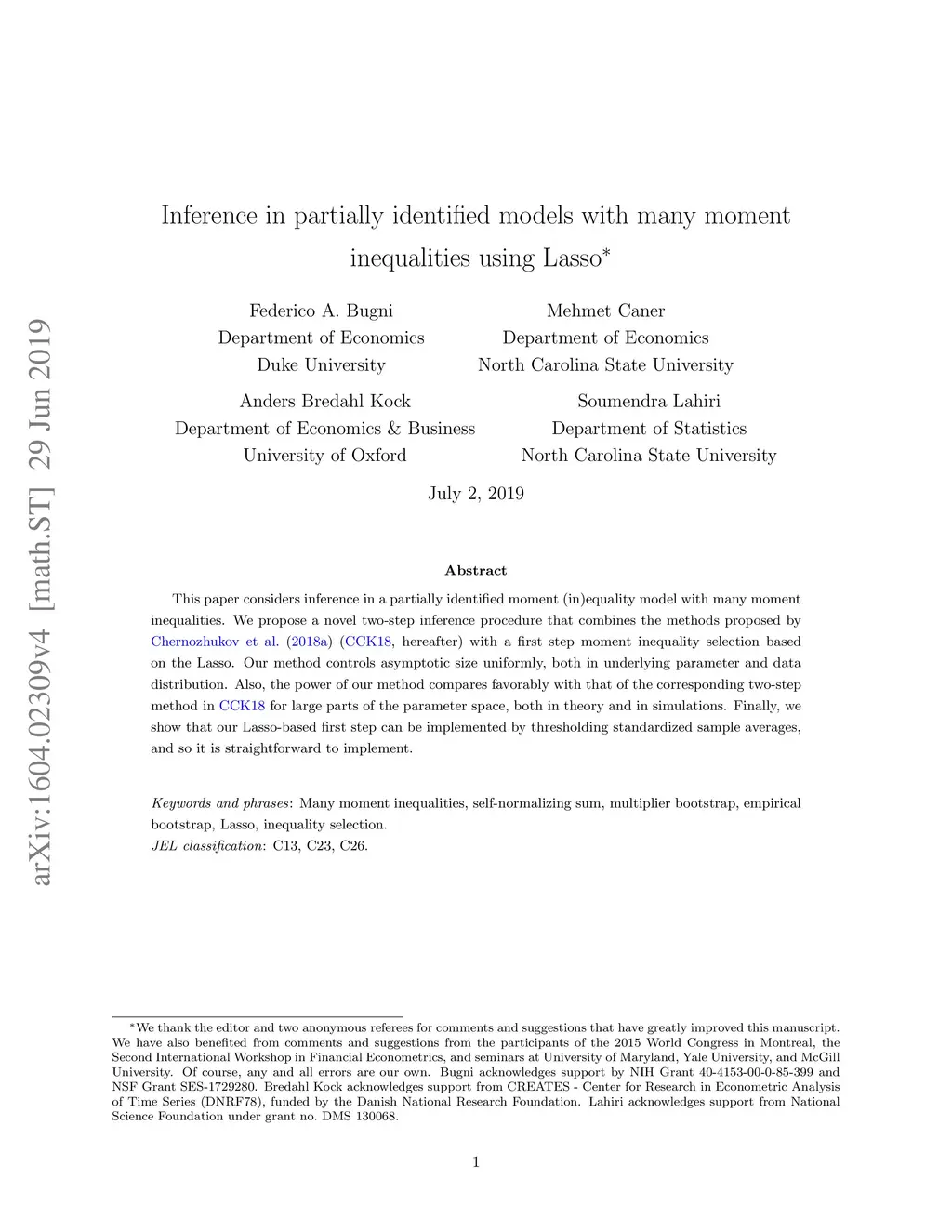 This paper considers inference in a partially identified moment (in)equality model with many moment inequalities. We propose a novel two-step inference procedure that combines the methods proposed by Chernozhukov, Chetverikov and Kato (2018a) (CCK18, hereafter) with a first step moment inequality selection based on the Lasso. Our method controls asymptotic size uniformly, both in underlying parameter and data distribution. Also, the power of our method compares favorably with that of the corresponding two-step method in CCK18 for large parts of the parameter space, both in theory and in simulations. Finally, we show that our Lasso-based first step can be implemented by thresholding standardized sample averages, and so it is straightforward to implement.
